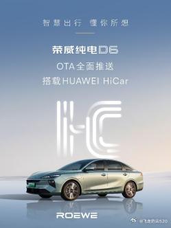 荣威纯电D6OTA升级HUAWEI HiCar了