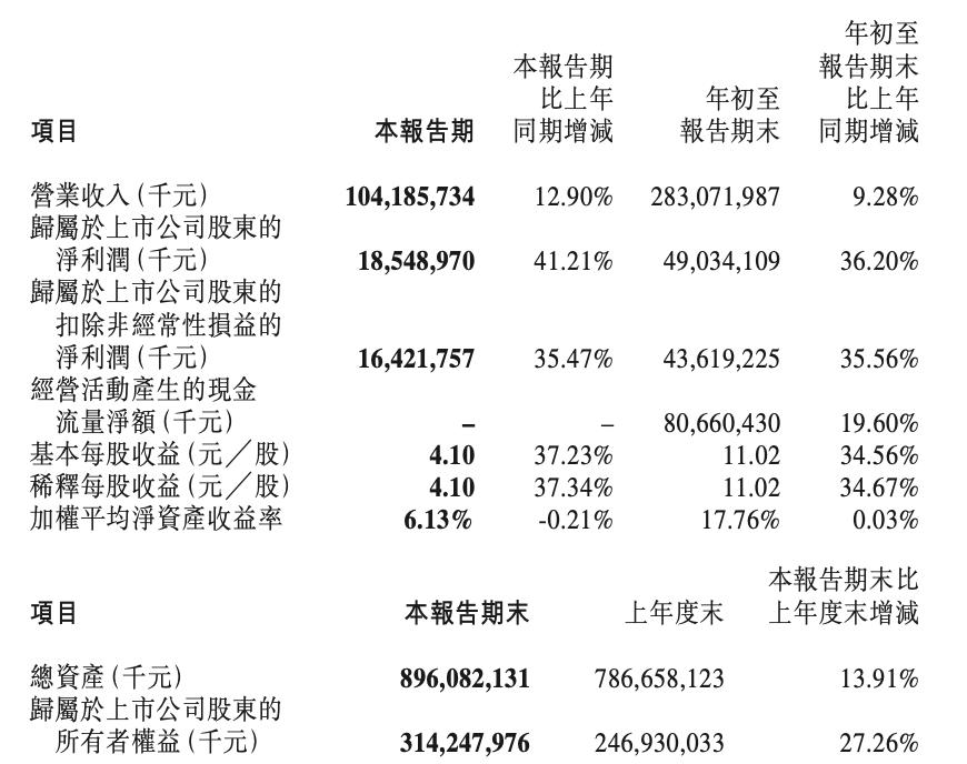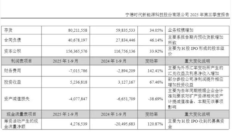宁德时代公布2025年三季度财报:今年第三季度总营收为1042亿元,同比增长12