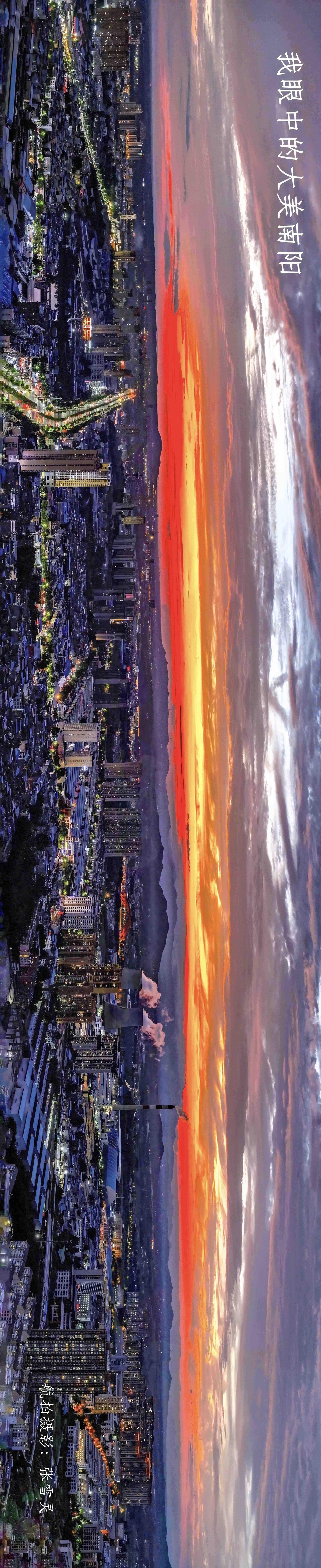 震撼!古城南阳的鸟瞰全图 图中的南阳市是一座底蕴深厚、风光绝美的历史文化名城。 从图中可以看到,南阳的城市景观极具特色,一侧是灯火璀璨的都市风貌,另一侧是绚烂壮美的天空盛景,仿佛历史与现代在这里交相辉映。这里有卧龙岗武侯祠,是诸葛亮躬耕之地;有医圣祠,纪念着“医圣”张仲景;还有白河国家城市湿地公园,形成了北方城市少有的万亩碧水景观。 此外,南阳的美食也颇具特色,板面、油茶、水煎包等让人回味无穷,独山玉、南阳烙画更是工艺精湛的特产。如今的南阳,既传承着“南都帝乡”的历史荣光,又展现着现代化城市的活力,是一座值得“三顾”的魅力之城。 (注;照片由南阳市摄影家协会张雪玲拍摄)