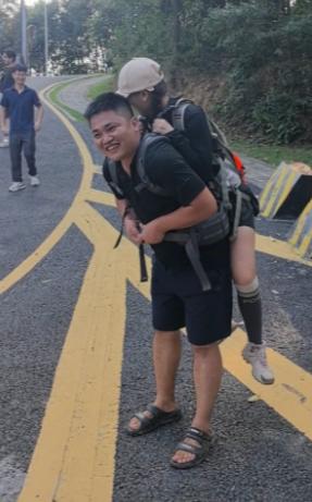 广东广州,一女子登山途中不慎崴脚被困于山间,期间旁人也试图背女子下山,但因女子是个一米七几的大高个,旁人尝试一番后确实也力不从心。正在大伙都犯难之时,一名身材高大,穿着拖鞋的河南小伙由此经过,当河南小伙得知情况后,便立即拿出背带将女子背在背后,一口气徒步三公里耗时四十分,将女子背到了能打车的地方。为此,旁人也对小伙乐于助人的行为,表示敬佩和点赞! 十月十九号这天,广州近郊的山林里,发生了一件让人心里暖暖的事。 一个姑娘登山时崴了脚,被困在路上,一位来自河南的陌生小伙穿着拖鞋,把她从山上背了下来,足足走了三公里。 事情得从姑娘的意外说起。 当天天气不错,姑娘独自来登山,走到一段满是落叶的台阶时,脚下没踩稳,脚踝猛地一崴。 钻心的疼让她当场蹲下,缓了二十多分钟才试着起身,可脚踝又胀又疼,根本没法受力,只能坐在路边的石块上,盼着有路过的人能搭把手。 就在姑娘着急的时候,一个背着双肩包的河南小伙从山上往下走。 他看到姑娘捂着脚踝、一脸难受的模样,主动停下脚步问情况。 得知姑娘走不了路,小伙没多犹豫,直接说 “我背你下山吧”。 这时候姑娘才发现,小伙脚上穿的不是适合登山的防滑鞋,只是一双普通的塑料拖鞋。 要知道,山林里的路满是碎石,还有些地方泥泞打滑,穿拖鞋走路本就不稳,更别说还要背人。 姑娘身高近一米七,体重约一百斤,对体力不算小的考验。 小伙先从背包里翻出一根灰色背带,把自己的背包垫在后背,让姑娘慢慢坐上去,再用背带轻轻把两人的腰部固定好,生怕下山时姑娘摔着。 全程他的双手只抓着自己的背包带,没有碰过姑娘的身体,特别注意分寸。 当时旁边还有几位登山者也想帮忙。 一位中年男士试着弯下腰想背姑娘,刚把人扶起来就觉得胳膊发沉,实在撑不住,只能无奈放下。 山路上不好走,有的地方得小心避开碎石,有的地方得踩着泥地慢慢挪。 中途有一次,小伙脚滑了一下,他赶紧轻轻往上调整了下重心,动作幅度很小,就怕背上的姑娘受惊。 就这么一步一步稳扎稳打,他背着姑娘走了整整三公里,花了三四十分钟,终于把姑娘送到了山脚下能打车的地方。 到了山下,姑娘连忙从小伙背上下来,一个劲地跟小伙说谢谢,还从包里掏出钱想给小伙当辛苦费。 可小伙摆了摆手,笑着说 “就是顺手帮个忙,不用这么客气”,说完就背上自己的双肩包,转身往别的方向走了。 后来姑娘跟旁边等车的人说,她已经联系了男朋友,对方很快就会来接她。 让人想起之前云南苍山发生的一件类似的事。 有个游客登山时跟朋友走散了,还迷了路,手机也快没电了,只能坐在原地等。 当地一个村民上山干活时发现了他,没多说什么,就把自己带的水和面包递给游客,然后背着游客的行李,领着游客往山下走。 苍山的山路比广州这处山林更难走,很多路段得扶着树干才能站稳,村民陪着游客走了两个多小时才到山下。 游客后来想给钱感谢,也被村民拒绝了,只说 “山里遇到人有困难,帮忙是应该的”。 不管是广州的河南小伙,还是云南苍山的村民,他们做的事虽然普通,却都透着一股子真诚的善意。 就像这个河南小伙,穿着拖鞋在山路上背人,没图任何回报,只是单纯想帮别人摆脱困境。 要是当时小伙没出现,姑娘一个人在山里待着,脚疼得没法动,万一等到天黑还没人发现,或者硬撑着下山导致脚踝二次受伤,后果都不堪设想。 这样的善举,让我们在陌生人之间感受到了温暖。 也希望更多人能像小伙这样,在别人需要帮忙的时候,愿意伸出援手。 同时,也能多些理解和感谢,不辜负这份难得的善意。 如果各位看官老爷们已经选择阅读了此文,麻烦您点一下关注,既方便您进行讨论和分享,又能给带来不一样的参与感,感谢各位看官老爷们的支持!