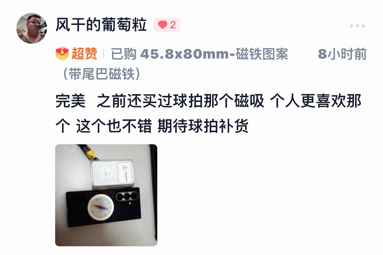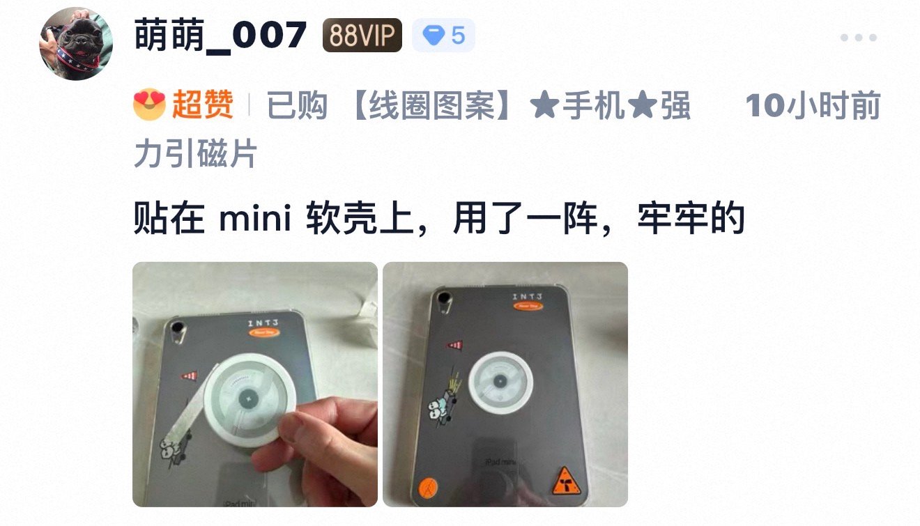 接收端引磁片,贴上手机壳/iPad 壳就变成磁吸壳[点赞]发射端磁吸补丁,也可以给移动电源加上磁吸功能,跟手机壳吸附一起。这样搭配也是相当 nice。带尾巴磁铁的小球拍引磁片也在抓紧补货了[嘻嘻]