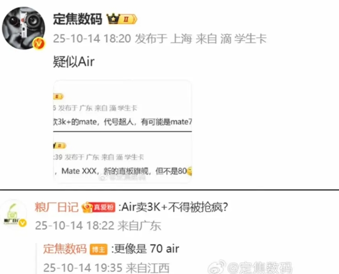 Mate 70 Air相当于Mate 70的青春版,根据定焦数码爆料,这款机型定价在4000左右,甚至有可能处于3000价位段。