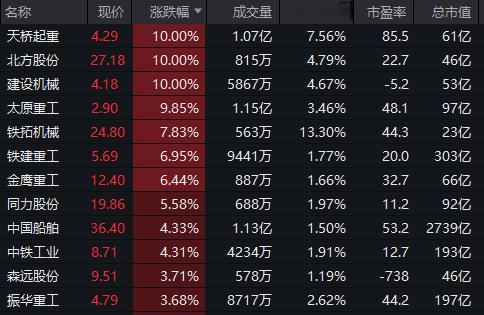 重型机械板块走强,天桥起重、北方股份、建设机械等多股涨停。