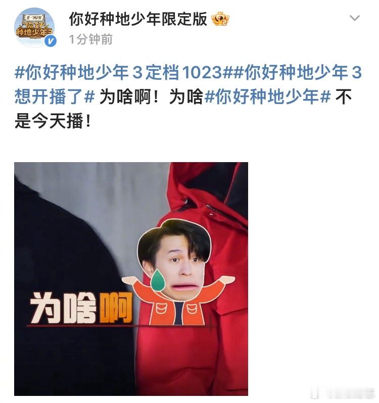 你好种地少年催播不顾十个勤天死活 刚宣布定档你好种地少年 官方就玩了把大的!一股脑放出魔性表情包催播,张张都是前两季的欢乐名场面,更加期待今年的精彩了!