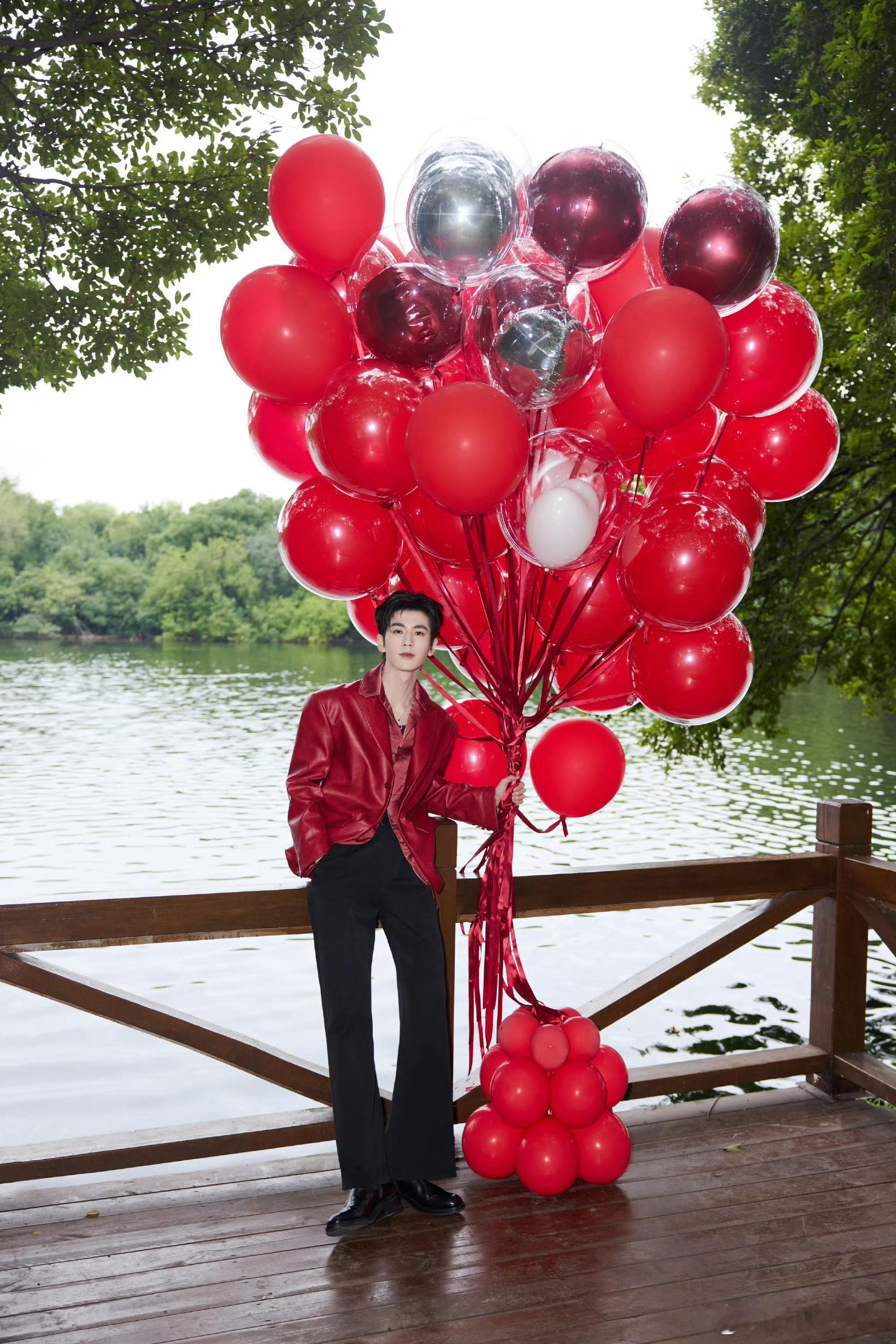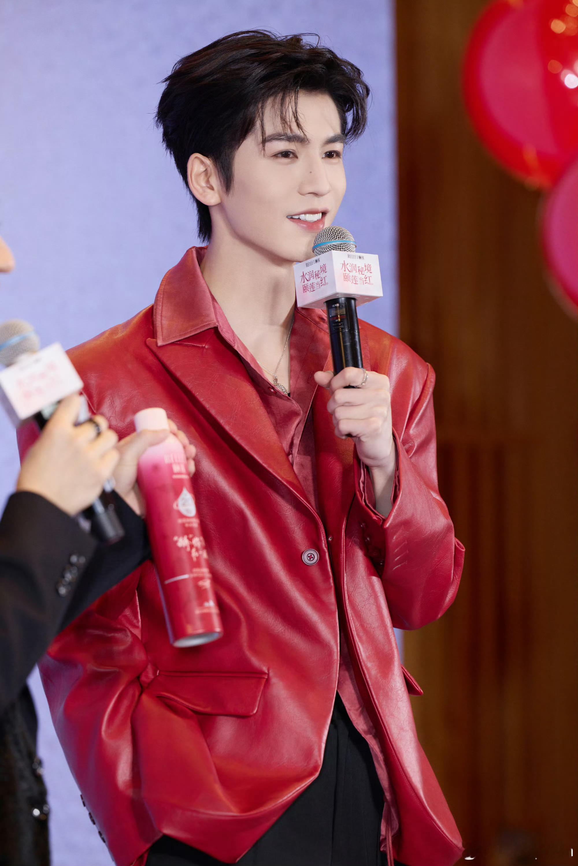 凌赫这一身红色西装活力满满呐!帅到犯规,行走的魅力发电机!