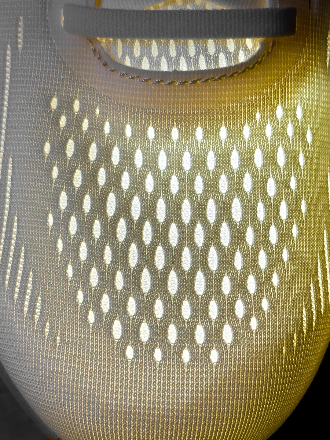 这双鞋的重量很轻,鞋面使用了工程网布,纹理开孔进行了专门的鞋面处理,透气性和外观都很好。