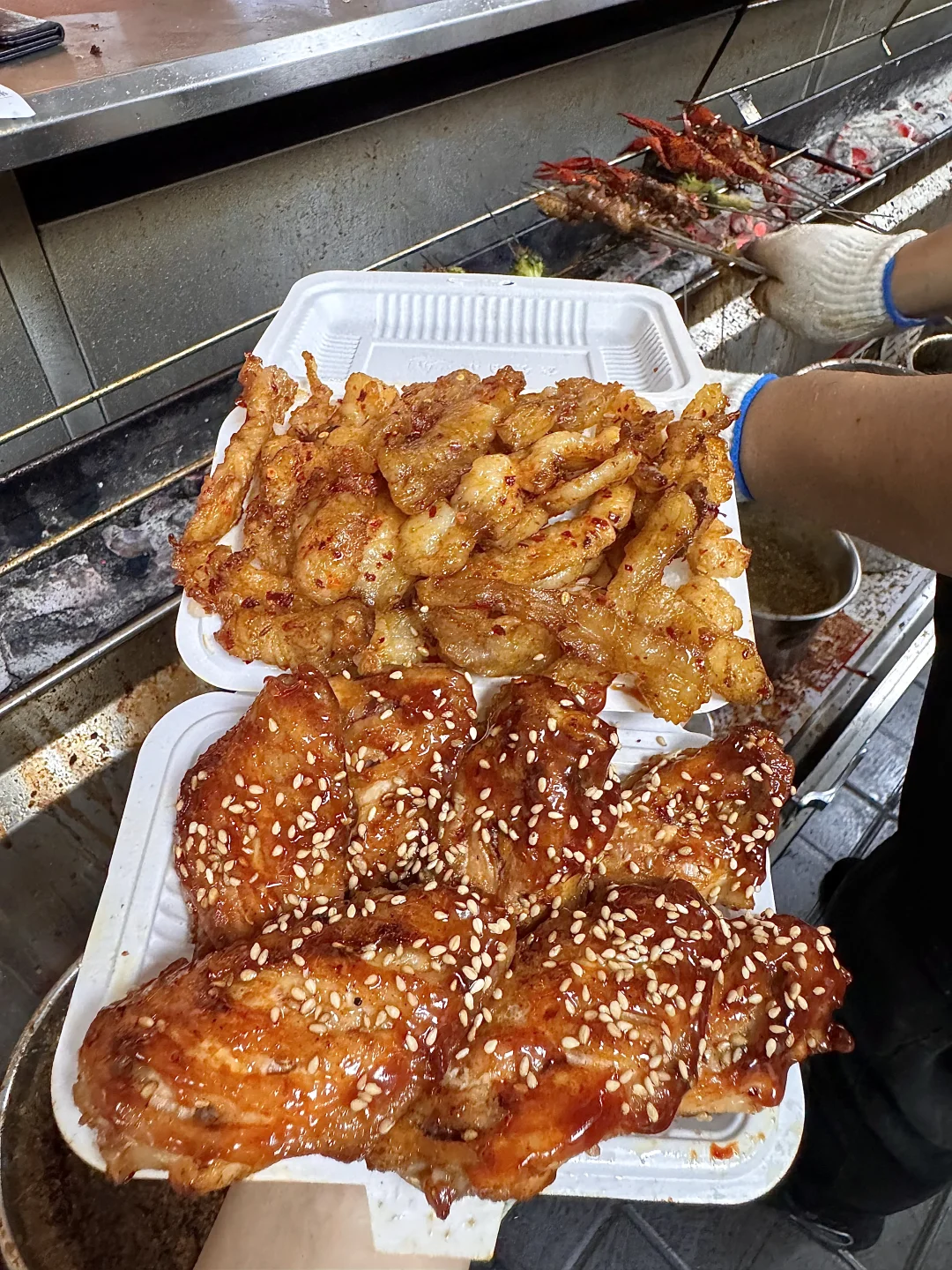 五天吃了4次。。烤鸡翅!烤胸口油!烤小龙虾!还有酱虾酱蟹……真的一口惊艳!! 附近本地居民常去的夜宵店子!生拌牛肉巨巨巨好吃😭搅上蛋液好嫩好滑吃得好爽!还有各种东北 朝鲜族料理!路过的姐妹值得去吃!叫:碟中鲽)