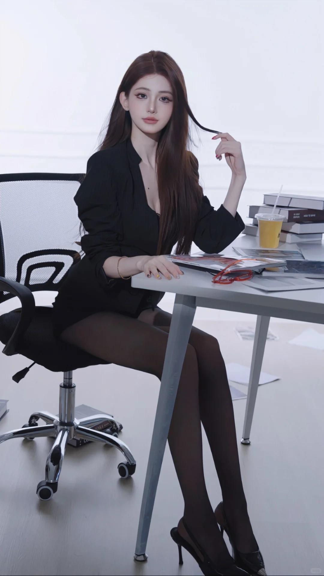 职场御姐风写真|黑西装黑丝+红框眼镜,妹妹的办公室纯欲感直接封神~西装黑丝写真