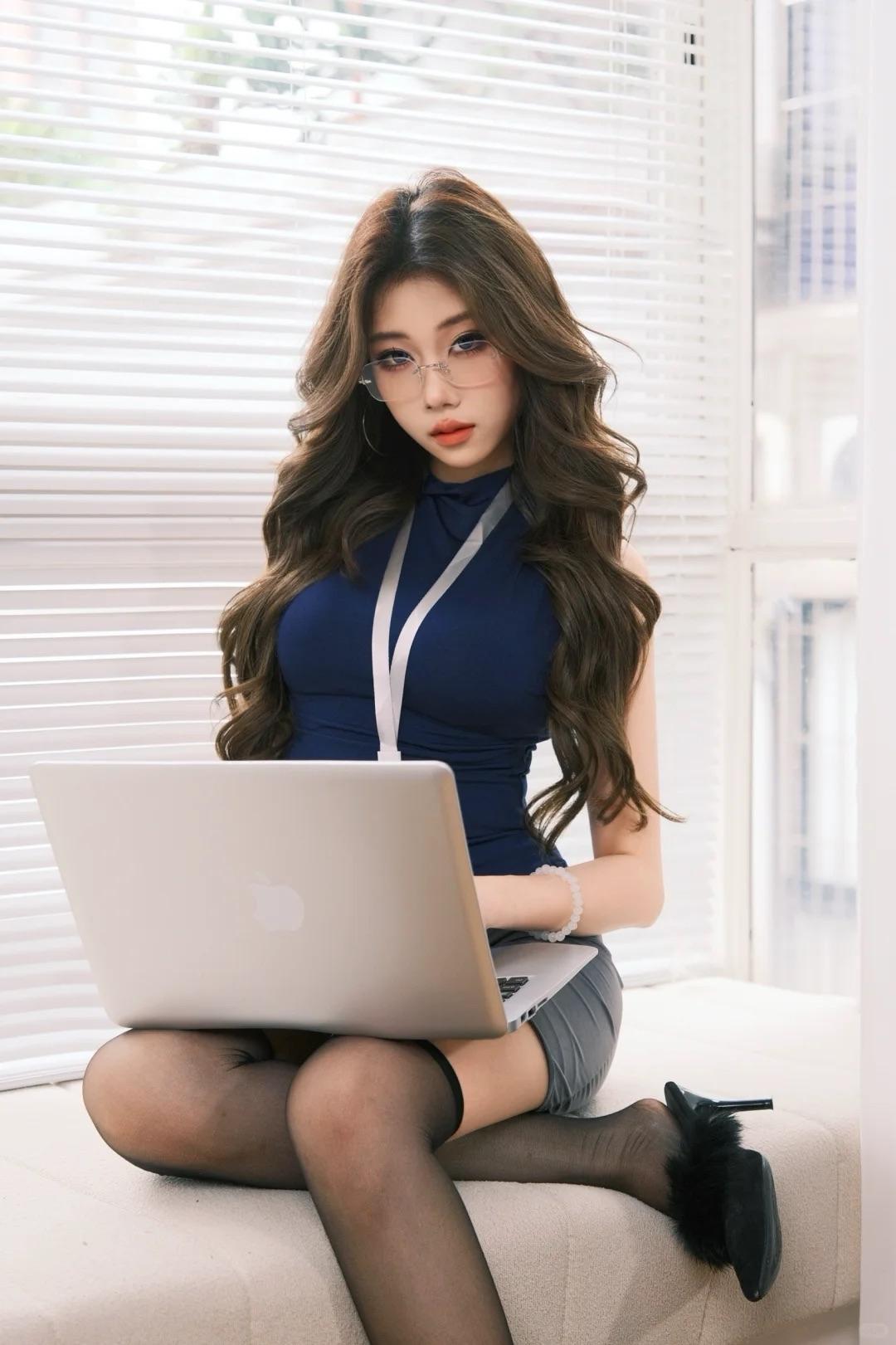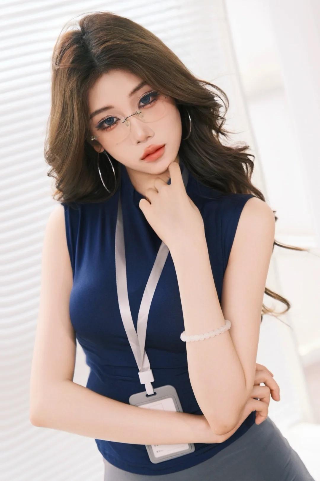 职场御姐风写真|藏蓝无袖上衣+灰包臀裙,眼镜杀妹妹的通勤穿搭太绝了~