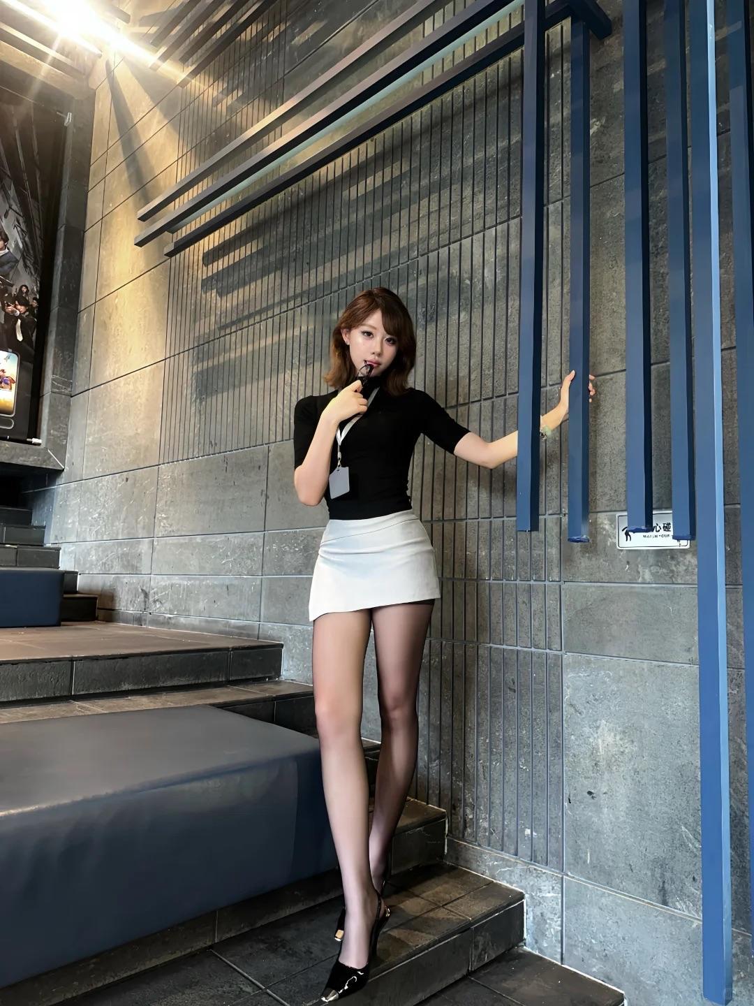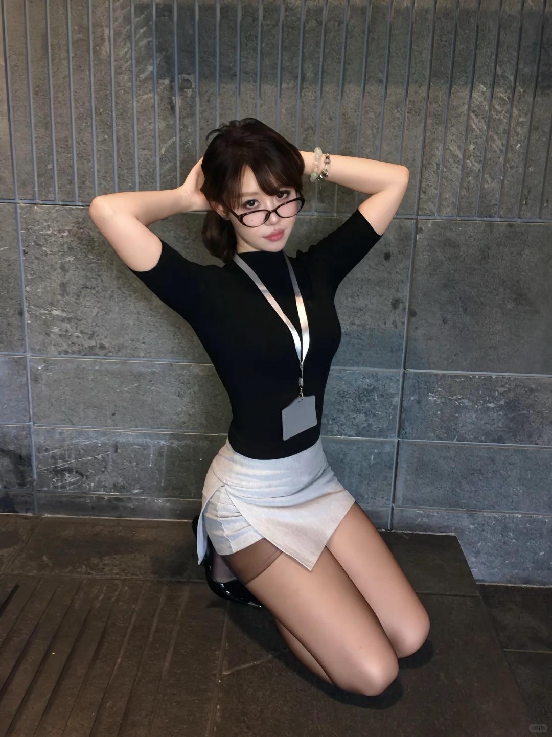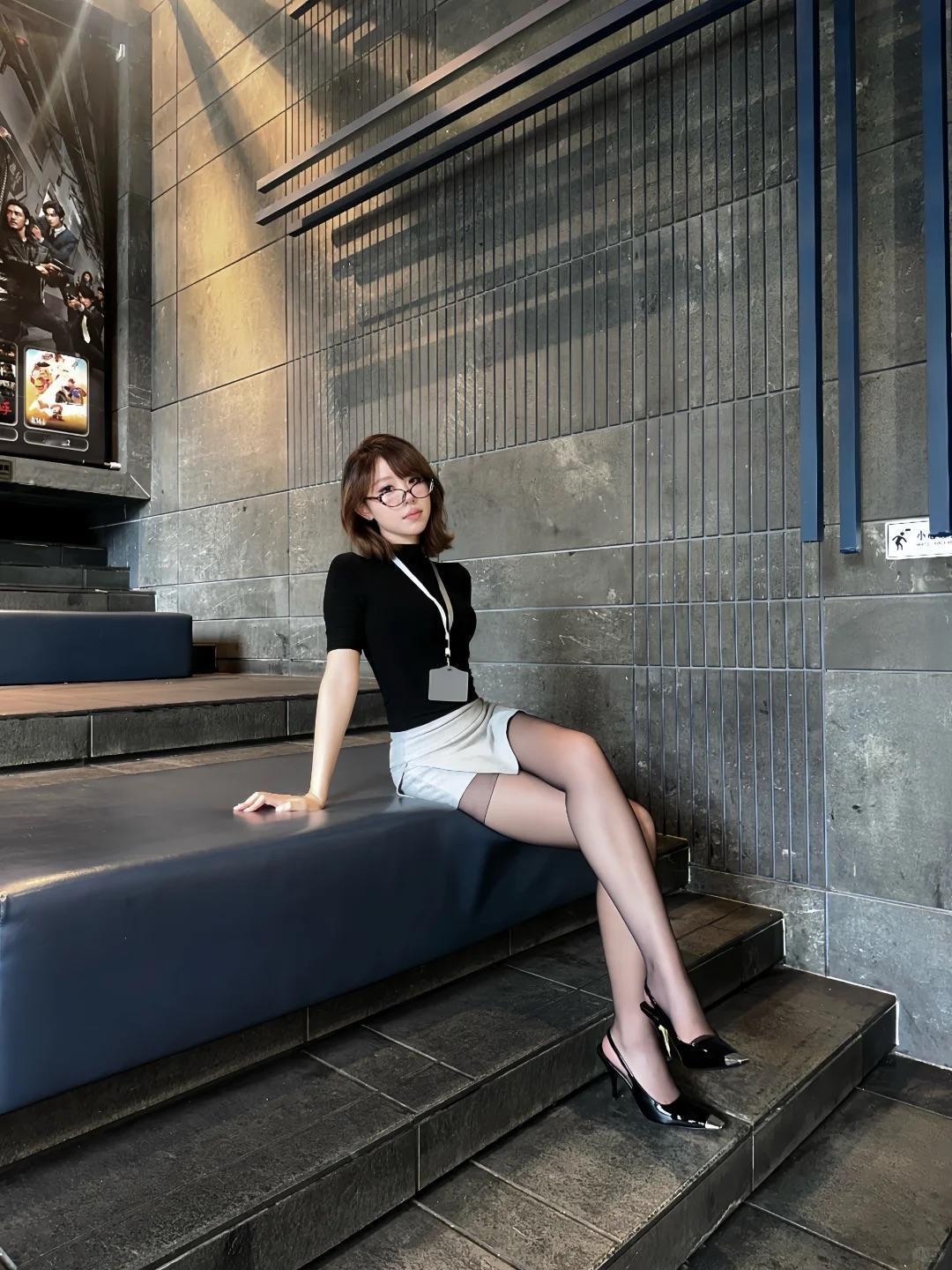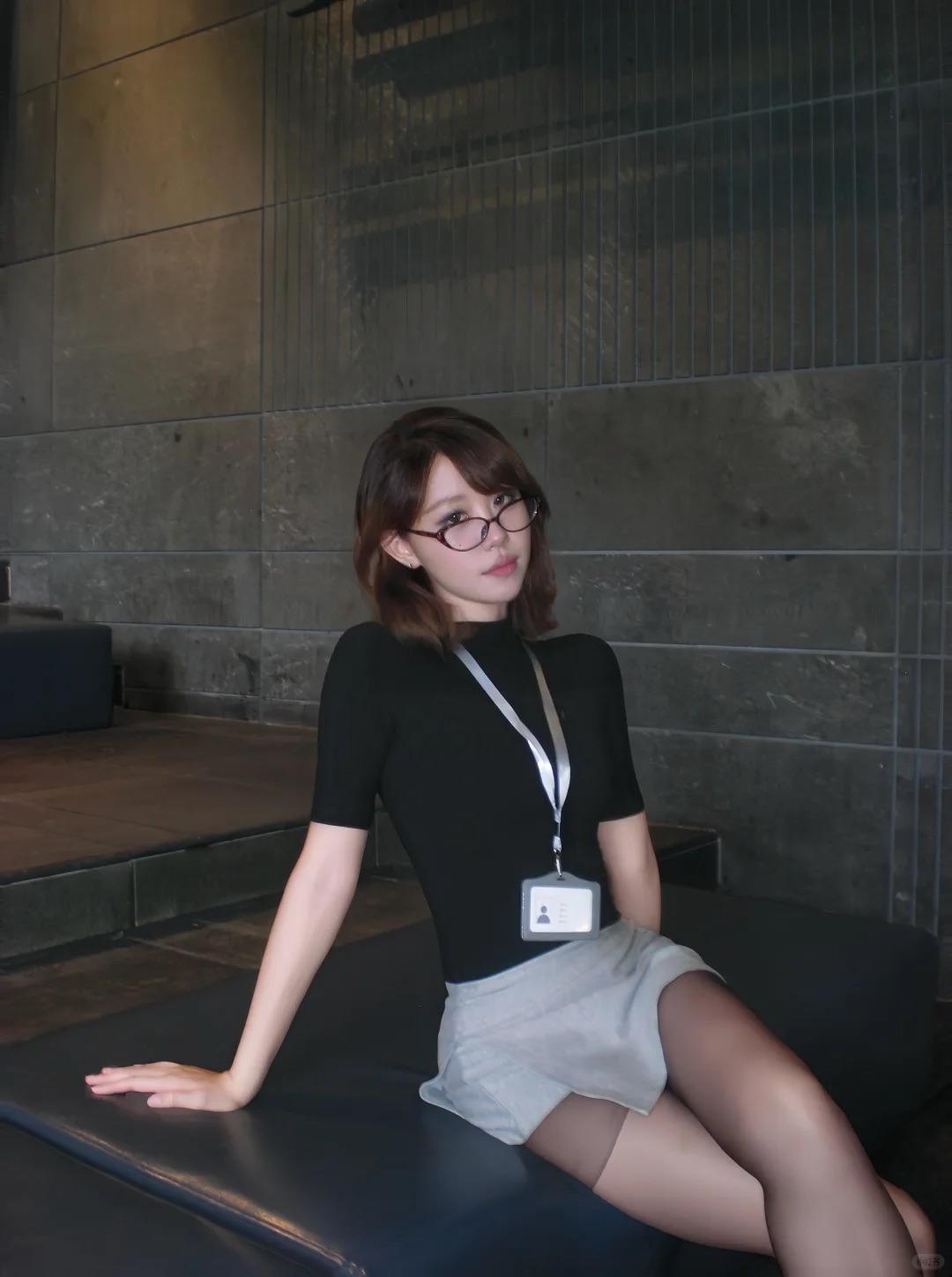 职场纯欲风写真|黑上衣灰短裙+黑丝,眼镜妹妹的穿搭把性感和干练玩明白了~