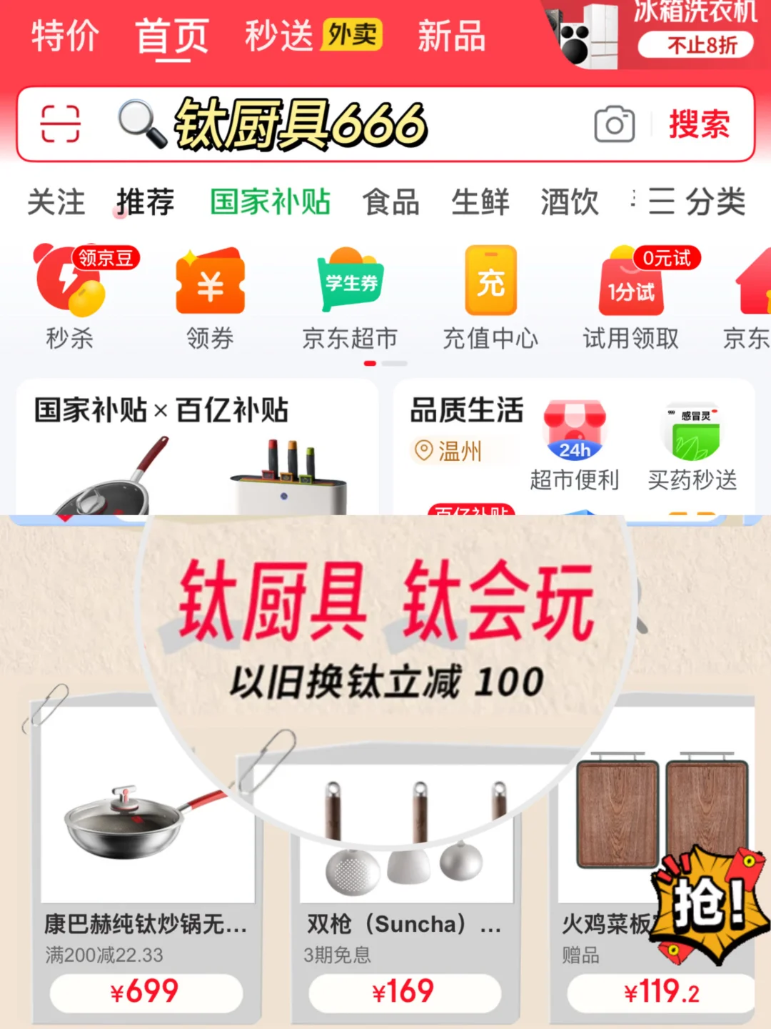 上京东🔍【钛厨具666】以旧换钛,至高立减100块,还有更多厨具低至五折!!!