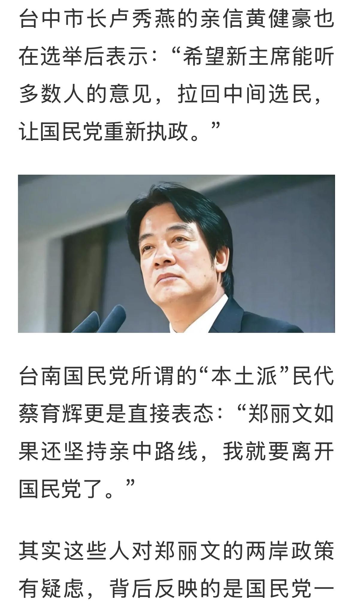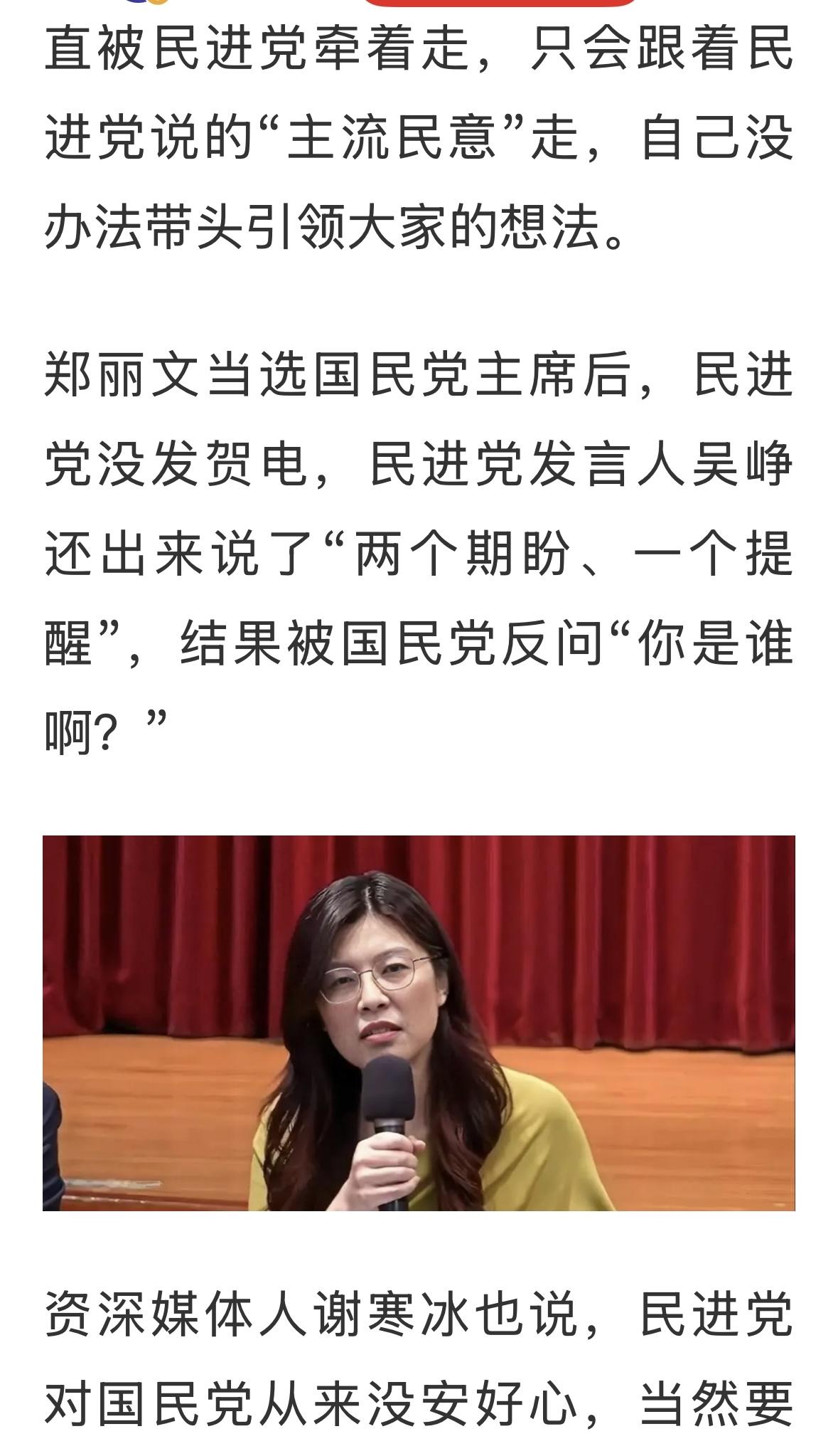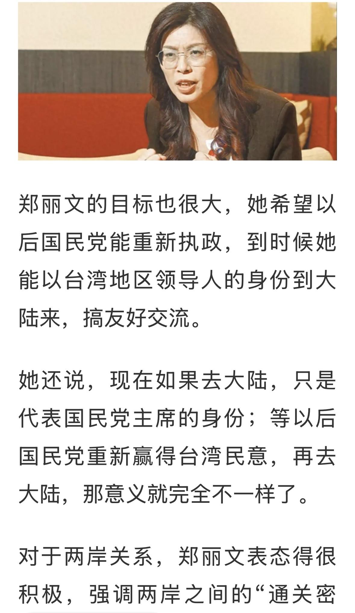 欢迎郑丽文主席访问大陆,支持国民党方面主动地、大胆地、勇猛地推动两岸融合发展,真