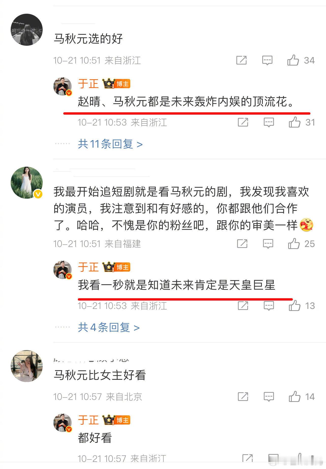 于正预言赵晴马秋元未来顶流发现于正夸人喜欢走量且语言膨胀,未来轰炸内娱顶流花,天皇巨星,哈哈哈哈夸多了总有几个会红[泪奔]