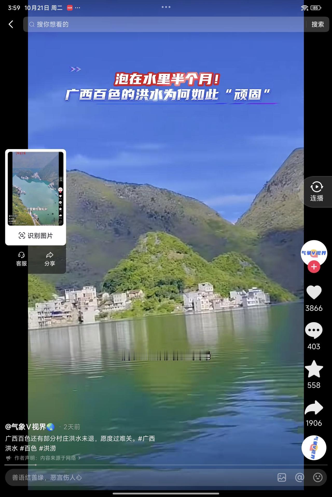 广西百色内涝半月未解:122个村庄仍泡"翡翠水",喀斯特地貌成排涝难题 当全国目光转向北方秋汛时,广西百色的洪水已悄然"变身"。原本浑浊的黄泥水历经半个月浸泡,逐渐呈现诡异的翠绿色,部分低洼村庄积水仍达二楼高度。 截至10月18日,全市365个内涝点中仍有122处未消退,主要集中在靖西、德保等喀斯特地貌区。 台风三连击:9月下旬到10月初,"沙博罗伊""麦德姆"等三轮台风接连暴击,河流水位超警戒,漫进村镇 喀斯特地貌"拖后腿":地下水位被暴雨抬高,山洞、暗河不断涌水,排水通道有限,抽水机也难顶 当地政府已紧急调配多台抽水泵,并组织救援力量,利用皮划艇等工具在积水区域穿梭,为被困居民运送生活物资。同时,村民们也自发行动起来,搭建临时桥梁,以保障被洪水阻断道路的通行。