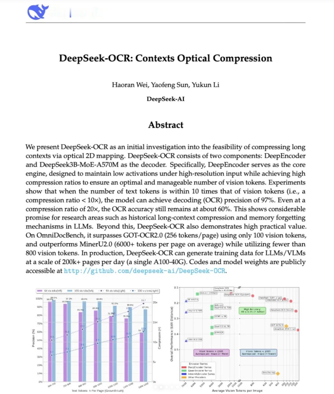 DeepSeek新模型为何被夸爆DeepSeek这次的OCR新模型,可能真打开了AI的新思路。传统语言模型读长文本像逐字抄经,费算力又慢;而DeepSeek反其道而行把长文本变成图像,再让AI去看图识字。结果不仅省算力,还把精度拉到97%,一张A100能处理20万页文档。
