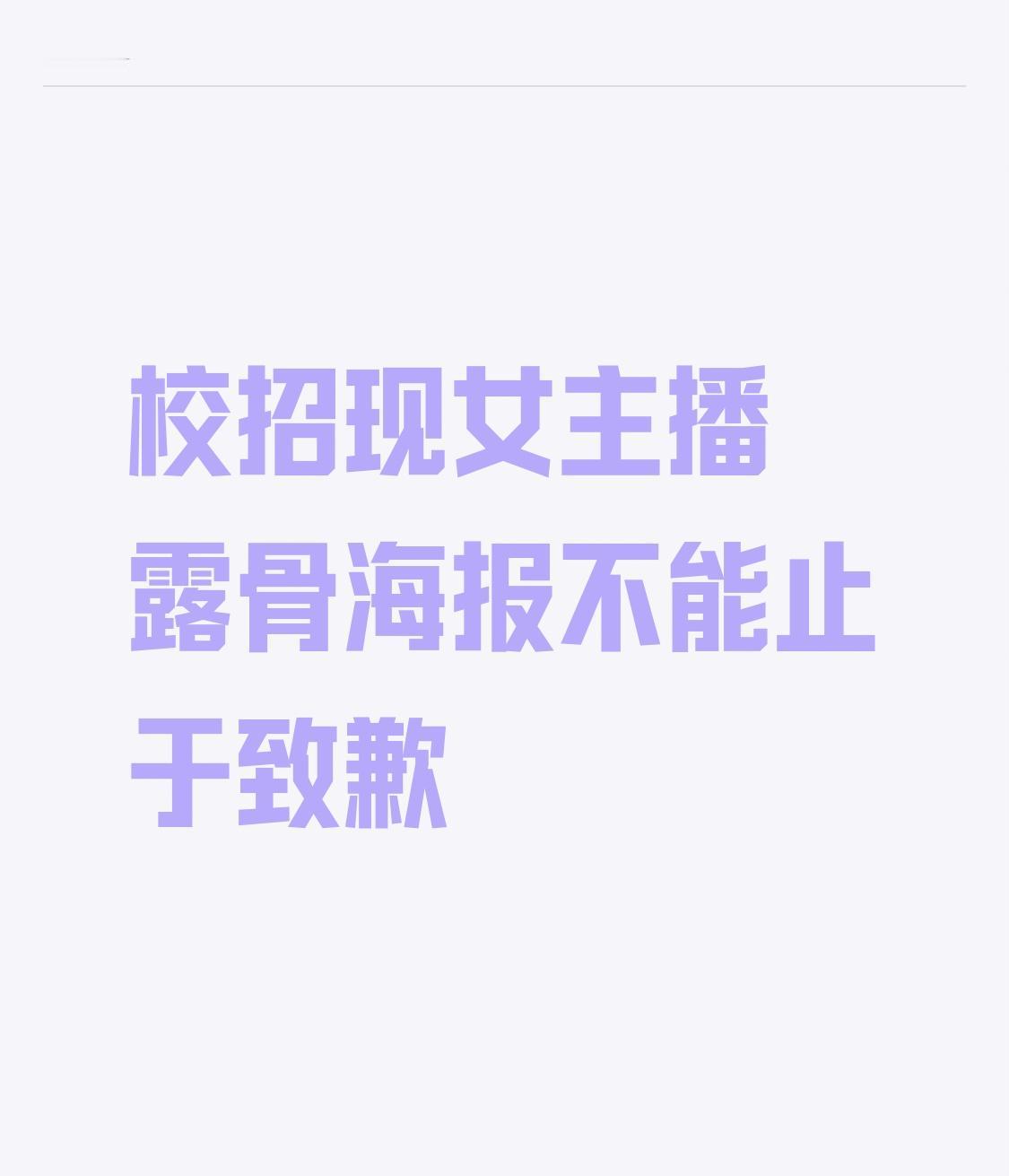 南昌大学校招现女主播露骨海报这事儿,不能就这么轻飘飘地致歉了事。学校说企业海报未