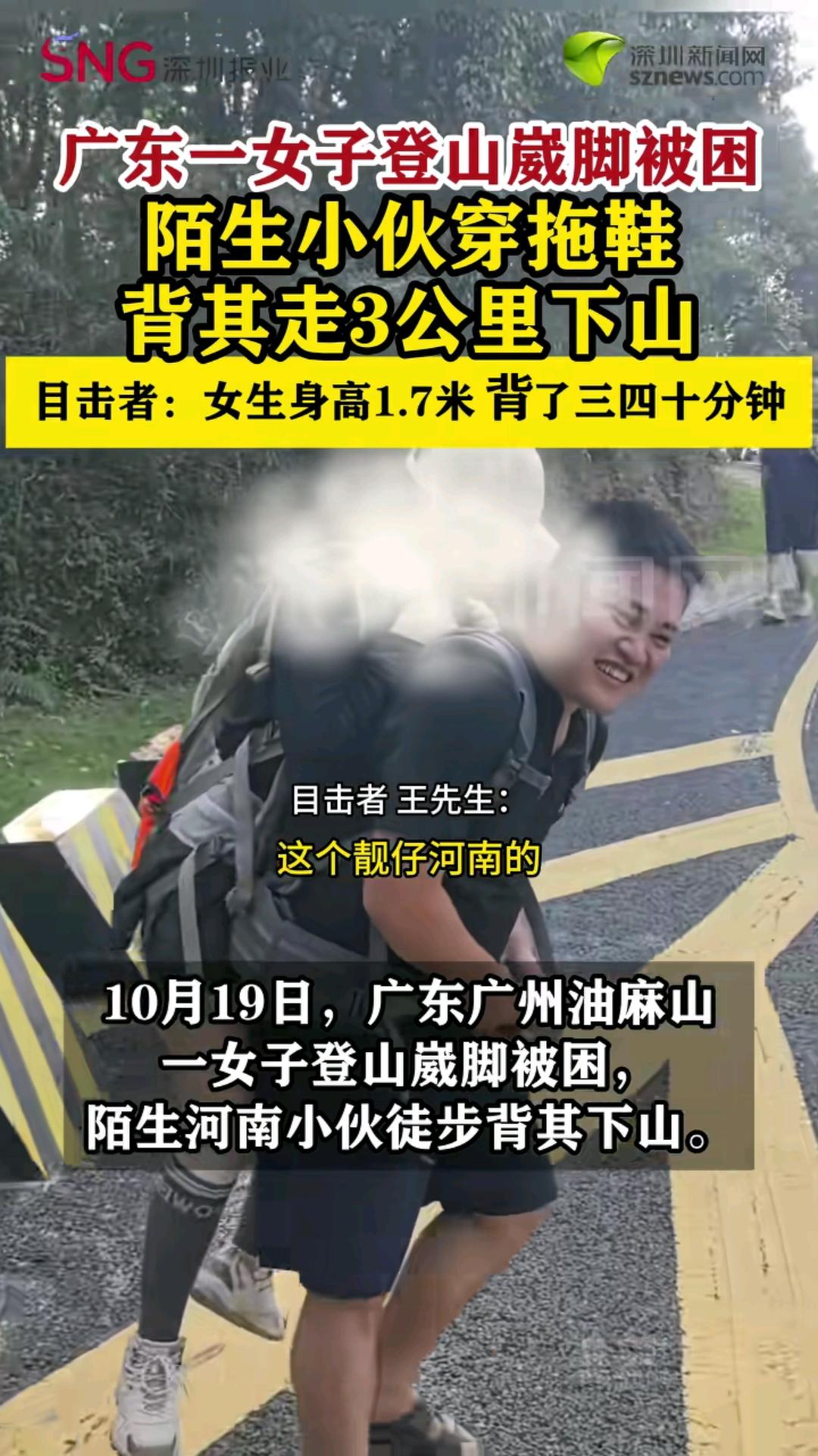 我直接破防 穿拖鞋的小伙才是真男神 广东女子登山崴脚被困 身边没人敢帮忙 陌生小伙光着脚踩拖鞋 二话不说背起她就下山 女子快一米七的个头 小伙硬生生背了三公里 四十分钟没歇一口气 山路坑坑洼洼 拖鞋滑来滑去 他却稳稳托着陌生人 现在太多人怕惹麻烦 遇见事躲得比兔子还快 这小伙用行动证明 善良从不是口号 是危难时伸出的双手 平凡人的勇敢最动人 这样的正能量不该被埋没 你身边有没有过这样的暖心瞬间