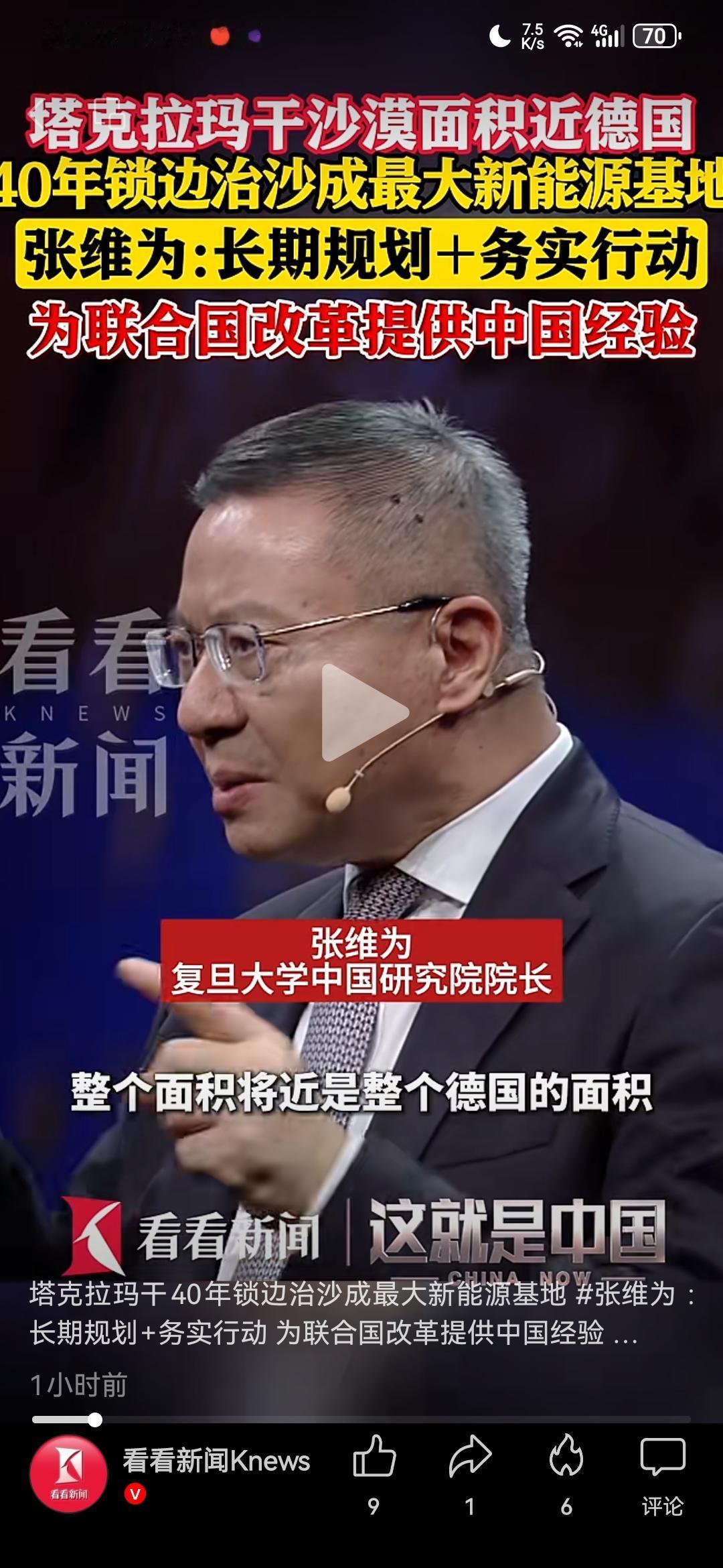 张维为教授最近这一段话在海外火了:“塔克拉玛干沙漠,整个面积将近是整个德国的面积,但我们通过长达40多年的不懈努力,把它‘锁边’,使之成为中国今天最大的新能源基地之一,我说中国这种行动导向的能力,从长期规划到具体实践,都是联合国改革和全球治理中应该借鉴的经验。” 根据看看新闻Knews报道,这段话是张维为教授在一次海外国际会议上讲的,当时他提到中国之力塔克拉玛干沙漠的经验时,全场都为之震撼,无他,实在是因为这个案例太过惊人,毕竟塔克拉玛干沙漠的面积可以足以与整个德国媲美啊,但是我们通过几十年如一日的努力,却能够将之“锁边”,让这一片浩瀚沙漠也为我们所用,这毫无疑问是整个人类工程史的一个奇迹。 我们为什么能够实现这样的奇迹?这当中毫无疑问有着值得借鉴的经验,张维为将其总结为“行动导向”,总结为“从长期规划”到“具体实践”,不得不说,实在是太精炼了,简简单单几个词语,就总结出了精华,我们做事情,向来都是首先会制定一个长远的规划,比如说中国制造2025等。 这些规划看起来十分宏大,似乎很难完成,但我们从不畏难,制定了规划之后,就踏踏实实开始执行,执行之中如果出现问题,就解决问题,如果出现困难,就克服困难,坚强不屈,百折不挠,最终,这片浩瀚的中华大地之上,就有着一个又一个奇迹迸发,不知不觉,我们就创造了举世为之瞩目的成绩。 这样的能力,放眼整个世界,都是稀有的,西方世界其实心中很不愿意承认这一点,但是张维为教授用他的讲话,使得他们不得不正视,不得不承认,而只要是有心人,想来肯定也会认真汲取其中的经验,学习我们创造奇迹的过程。