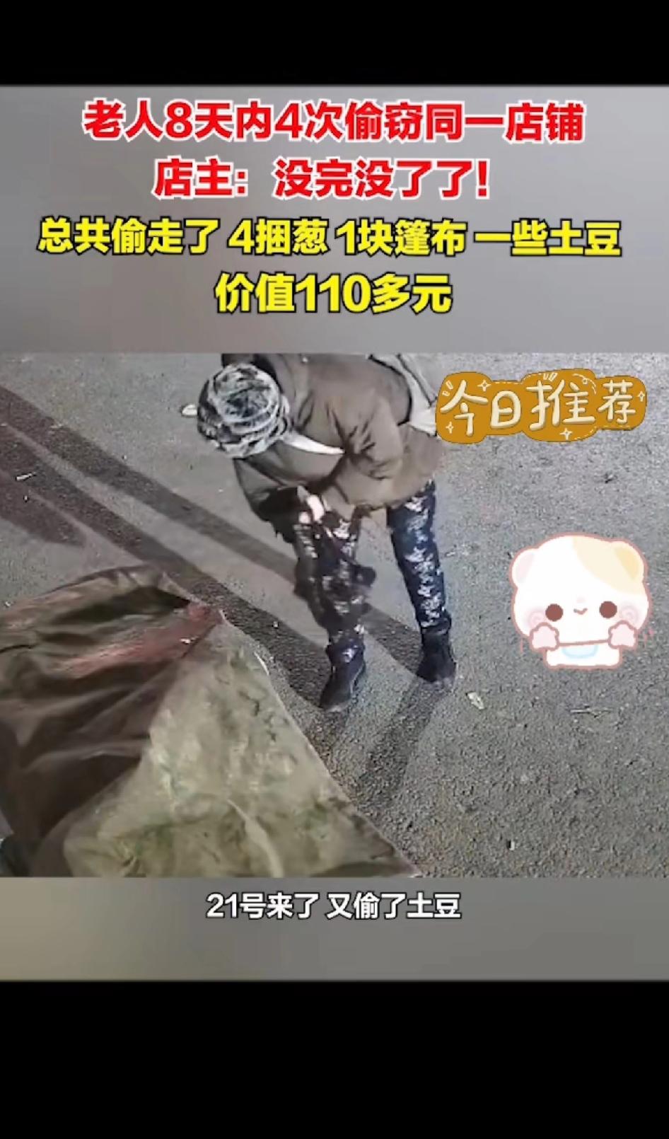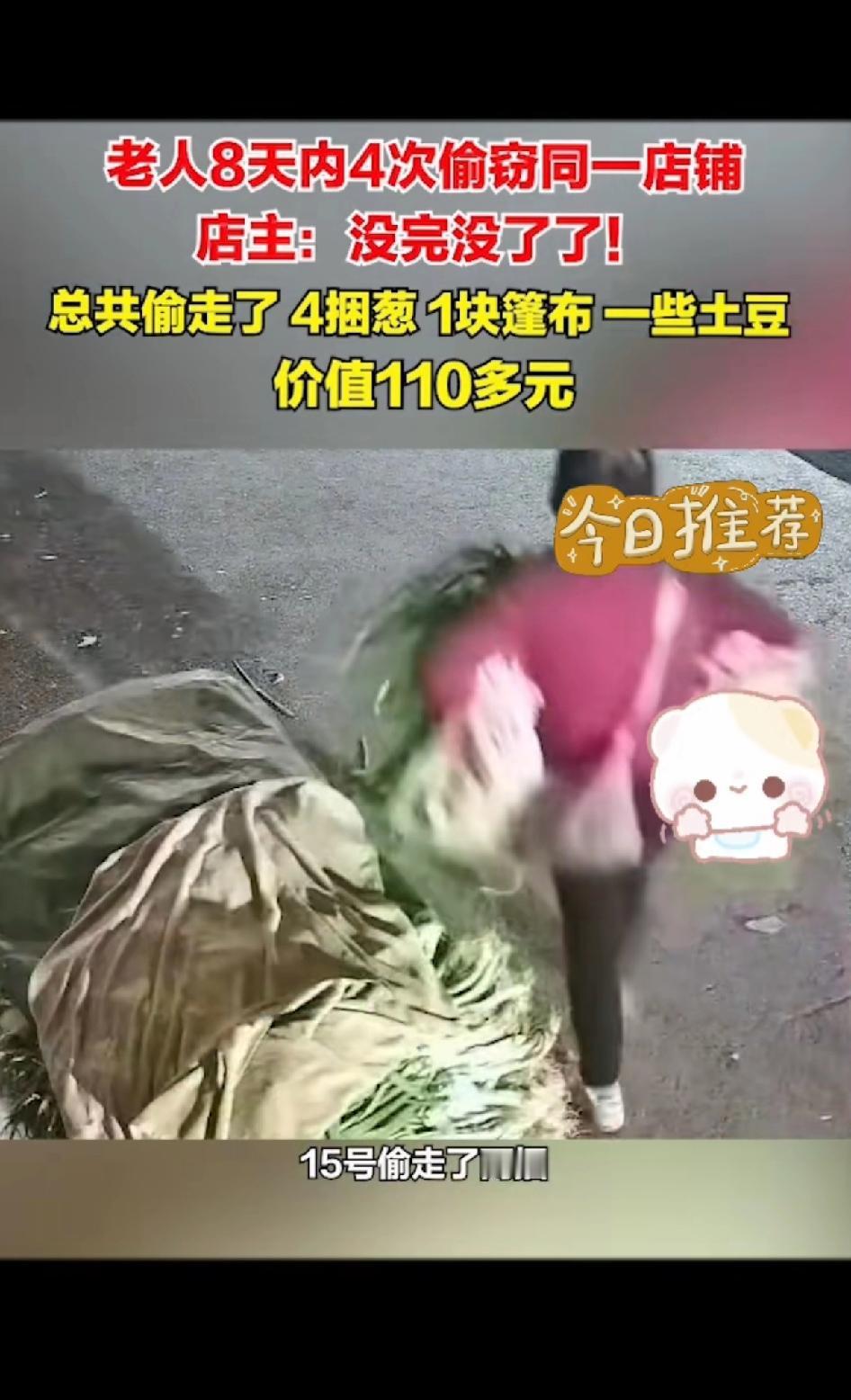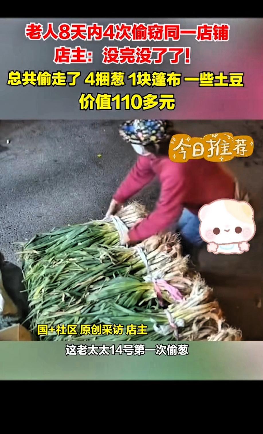 老人8天内4次偷窃同一间店铺! 店主:没完没了了!第一次偷一捆葱,第二次变本加厉