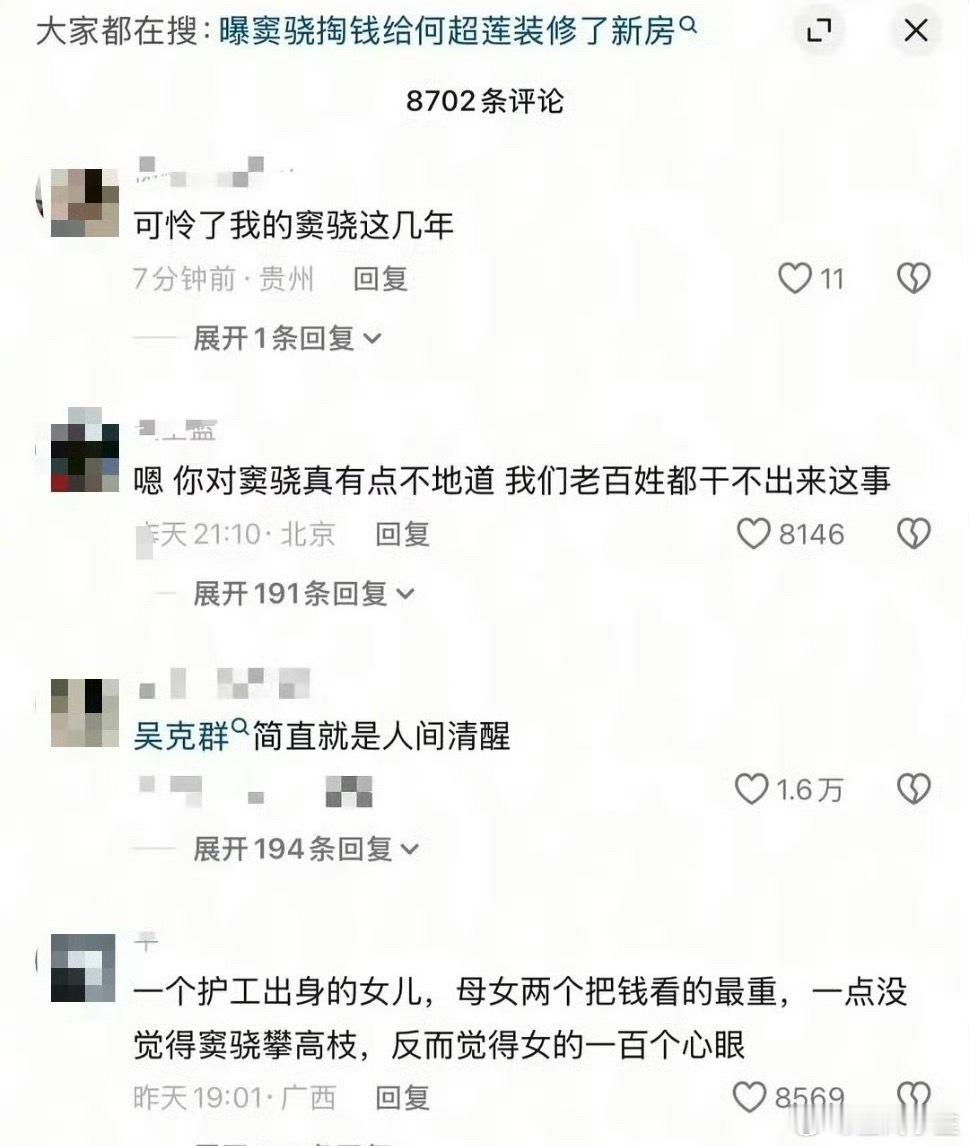 何超莲评论区被网友攻陷了,一出事就怪女生,要是男生真是为了爱情,他自己也不会在意,要是为了攀高枝那也活该
