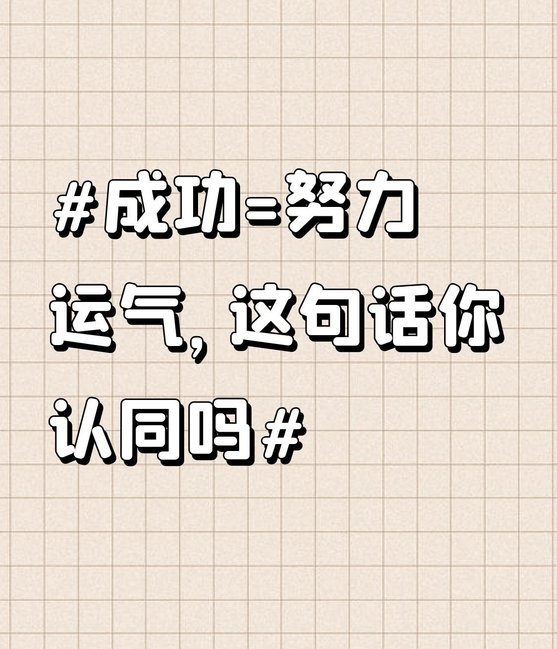 我觉得“成功=努力+运气”有一定道理,但也不是绝对的。 努力确实是成功的重要基石。就像爱迪生说天才是99%的汗水加1%的灵感,还有1万小时理论,都强调了努力的分量。比如周杰伦,早期即便他很努力,却因咬字不清只能在酒吧伴奏。直到被吴宗宪发现,运气来了,才开启成功之路。 不过,只努力没运气也不行。像高考一分之差,可能就走上不同道路;漏登马航M730航班的人,运气让他们逃过生死劫。所以,成功既离不开努力的积累,也需要运气的加持。