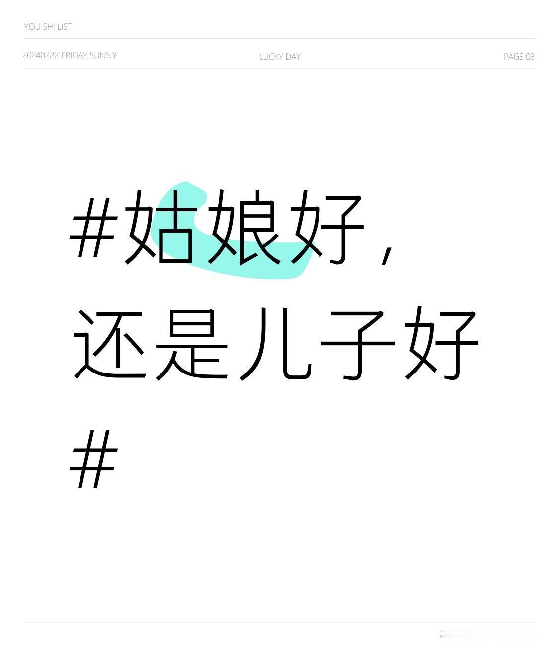 生姑娘好还是儿子好,这事儿还真没个准儿。有人觉得姑娘是贴心小棉袄,可爱又孝顺,长大能陪在身边嘘寒问暖。像我一朋友,她女儿就特别懂事,会给她按摩、送小礼物。但也有人偏爱儿子,觉得儿子能传宗接代,关键时刻能撑场面。之前我妈看病,我哥背着她上楼下楼,我就替代不了。 还有人从家庭热闹程度考虑,觉得儿子儿媳带着孙子孙女,过年过节一大家子热热闹闹。不过也有人觉得生姑娘压力小,不用操心买房买车。其实吧,儿子女儿各有优势,有儿有女最圆满。要是只能选一个,我还是更想要姑娘,就图那份贴心。