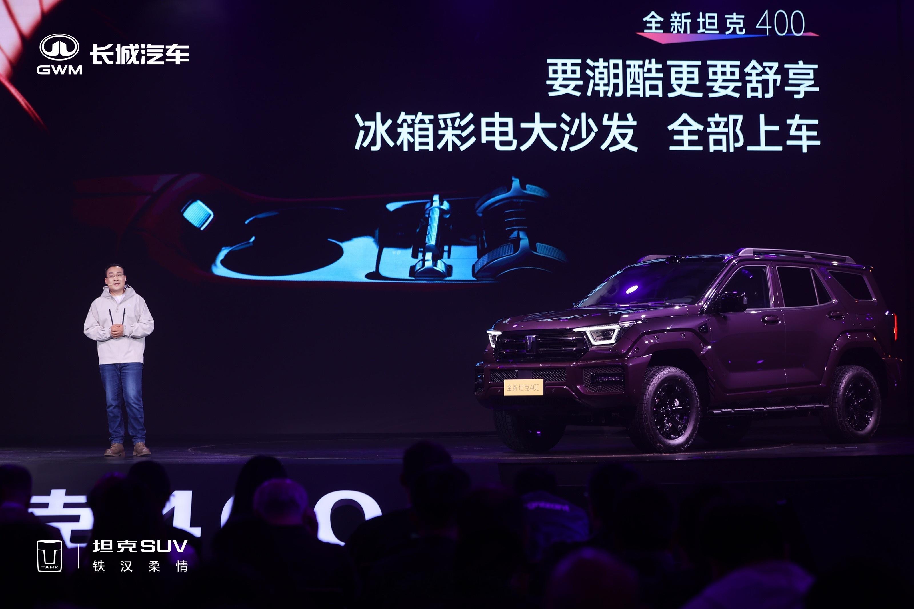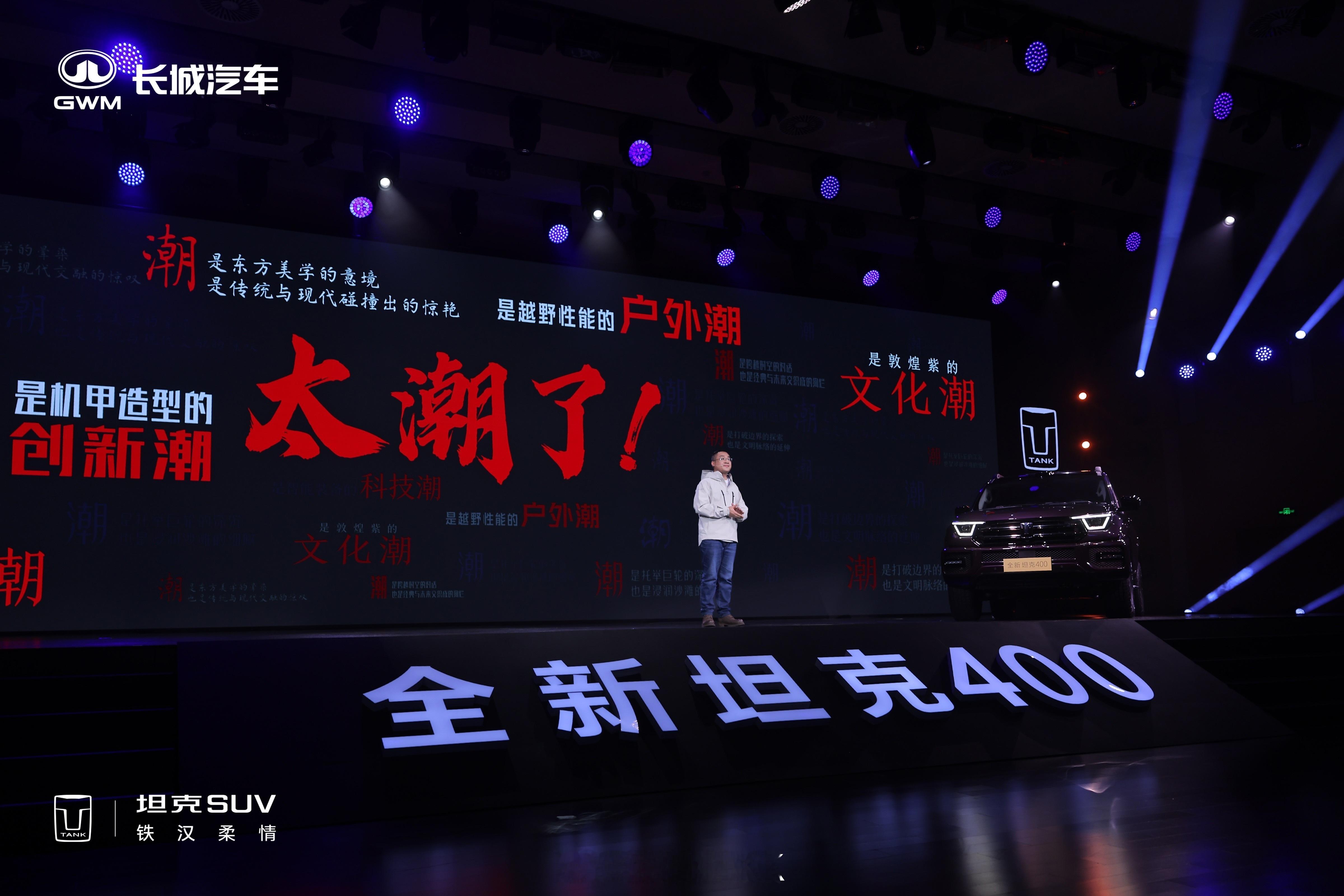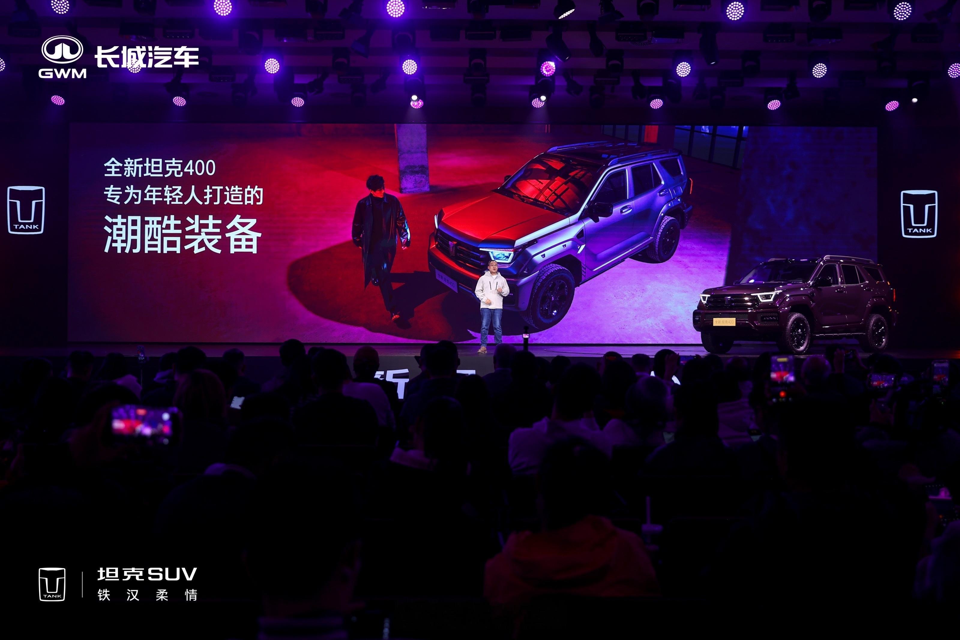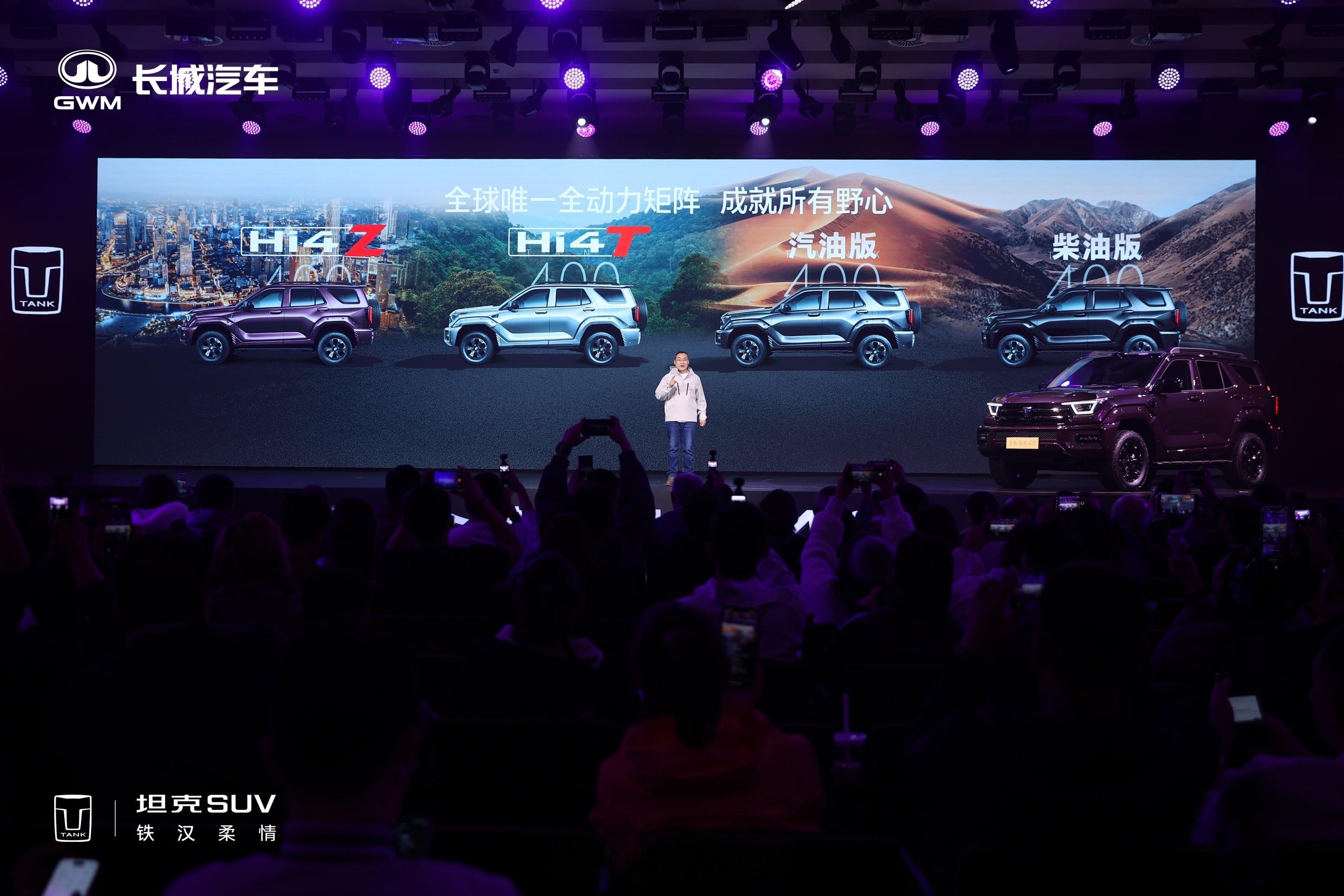 坦克400来啦,汽油、柴油、Hi4-Z、Hi4-T四种动力形式都有。Hi4-Z 30.98万元,越野能力更强的Hi4-T 32.98万元。现场舞台布置得很潮,铁汉之外的一种机甲都市风格。