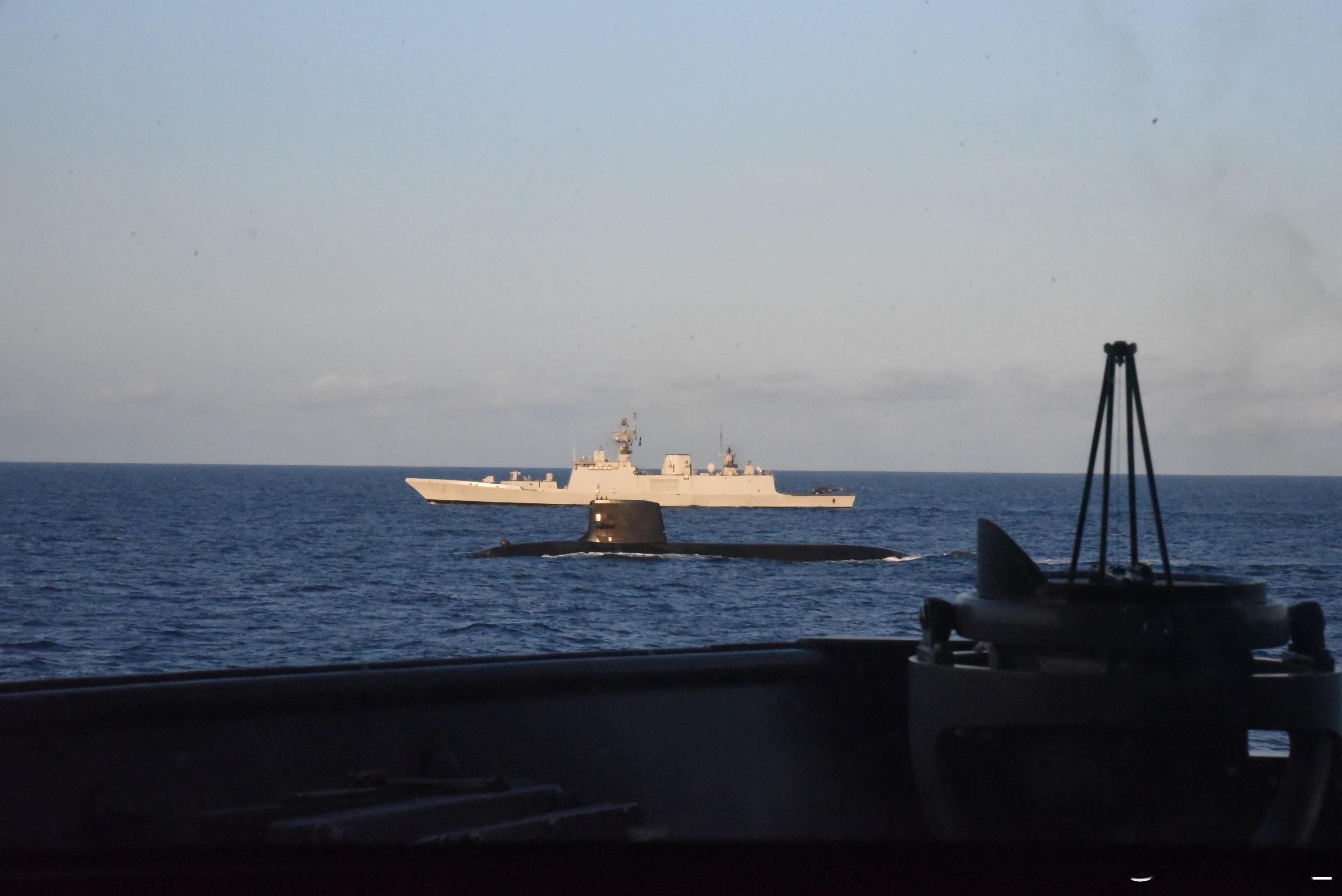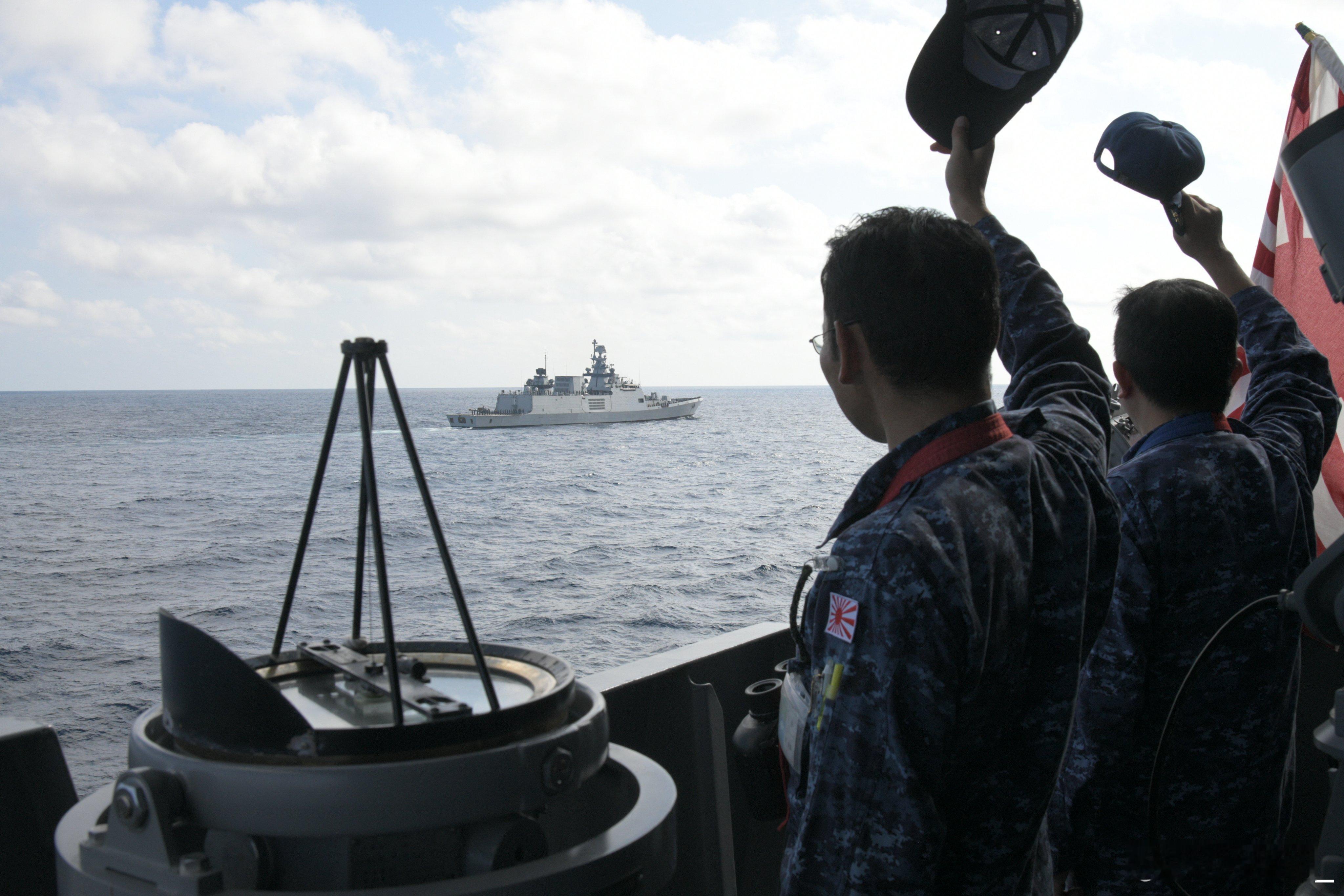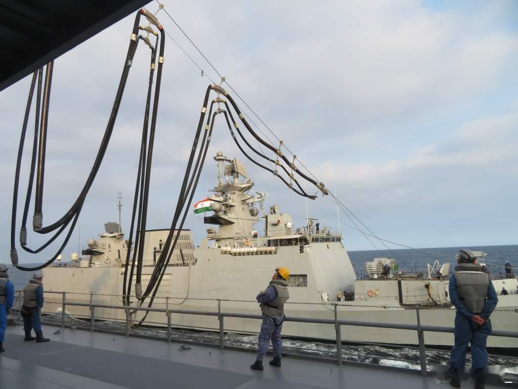 印度海军F-49“萨亚德里”号护卫舰与日本海自119“朝日”号驱逐舰、426“淡海”号补给舰及一艘潜艇在九州西海岸举行联合演习。