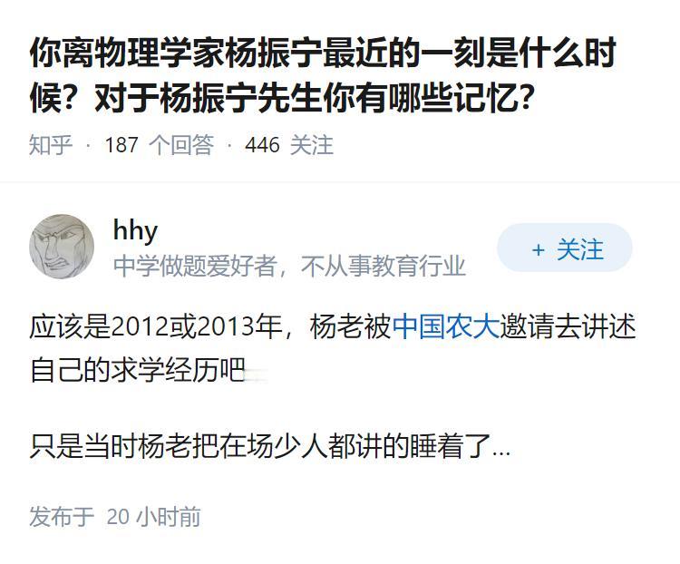 你离物理学家杨振宁最近的一刻是什么时候?对于杨振宁先生你有哪些记忆?