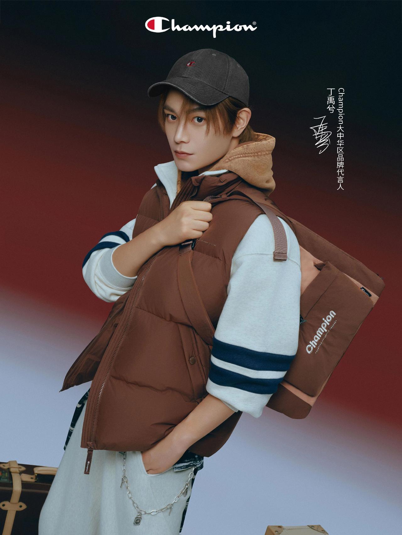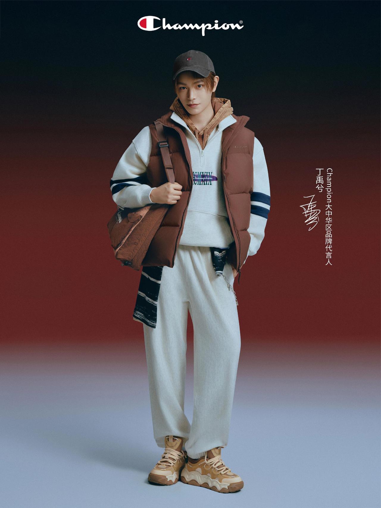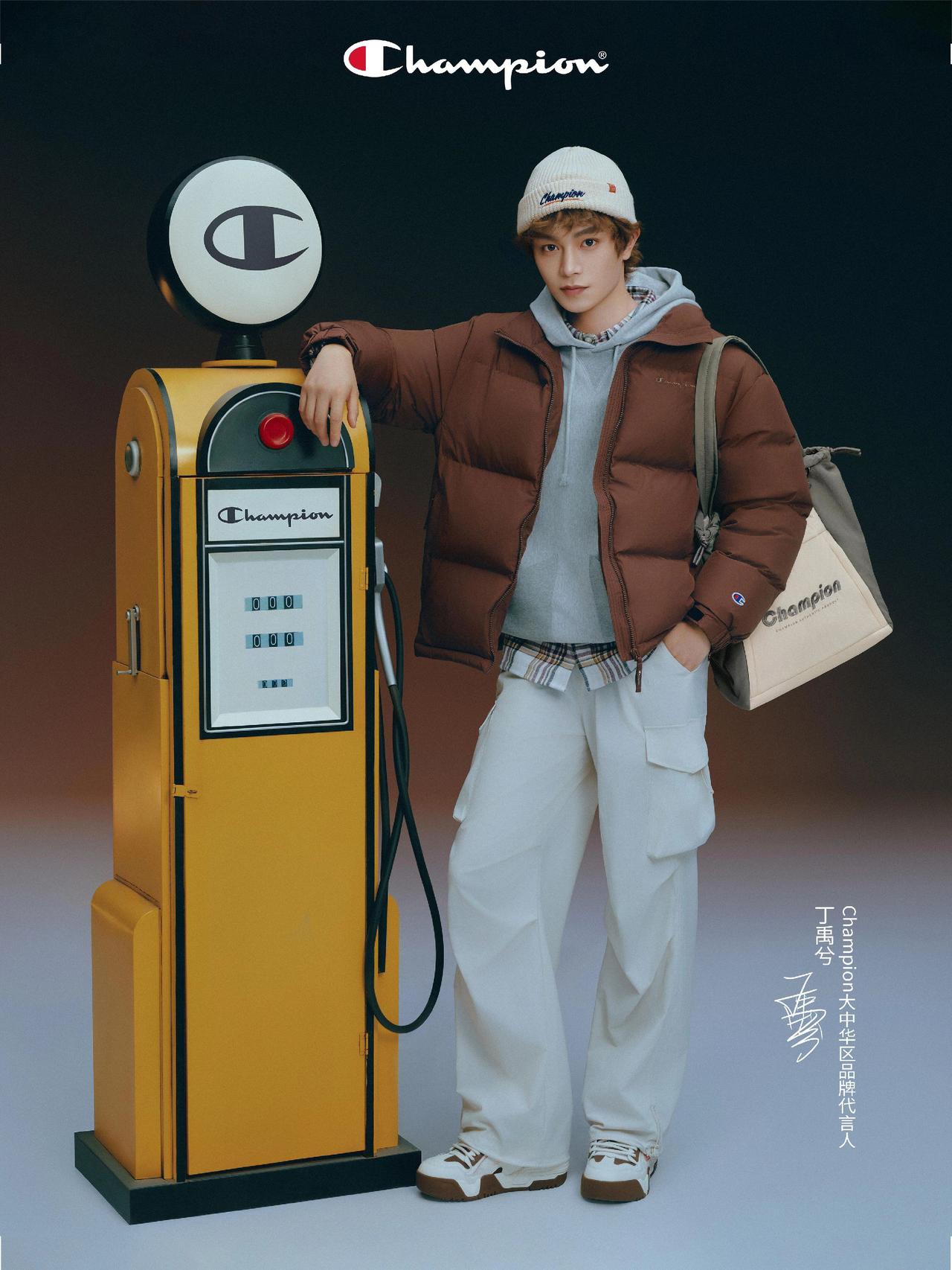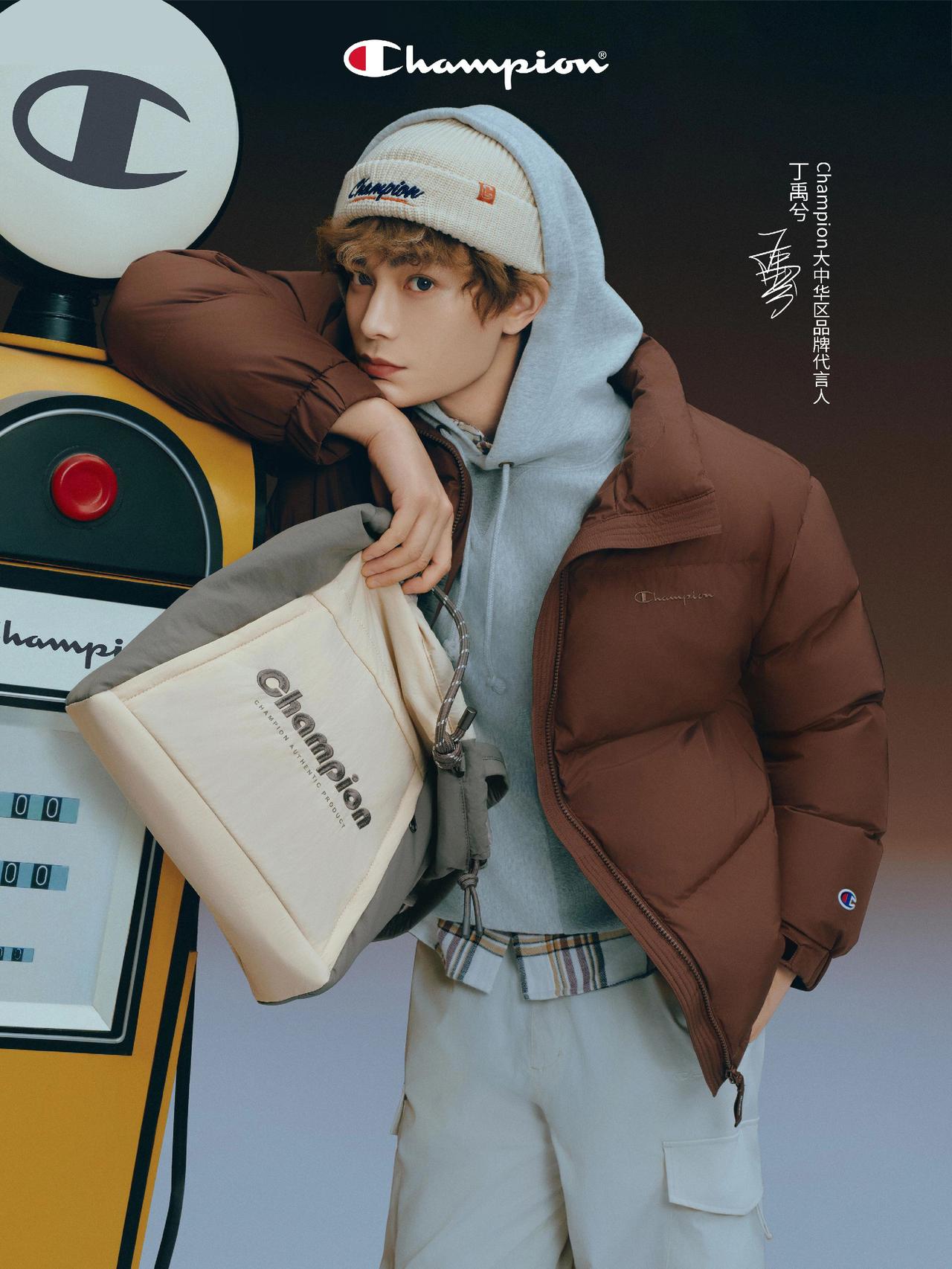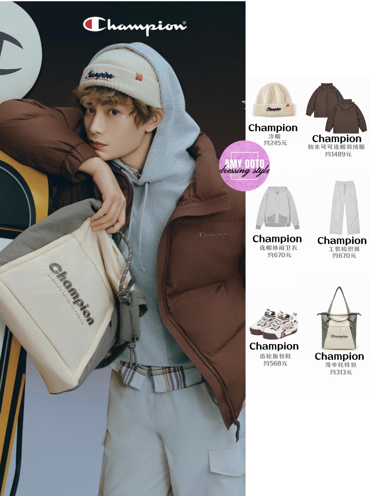 丁禹兮的Champion秋冬穿搭太会玩“暖男松弛感”了!粉末可可色连帽羽绒服,保
