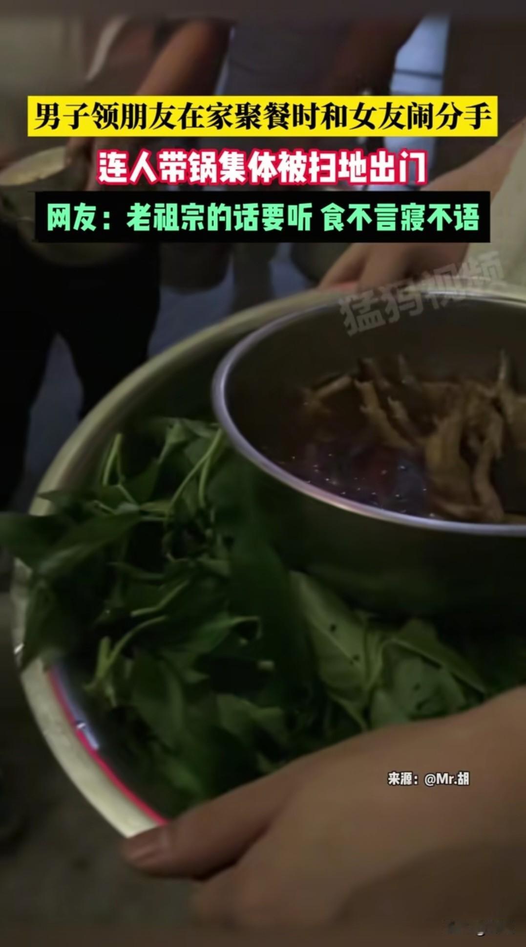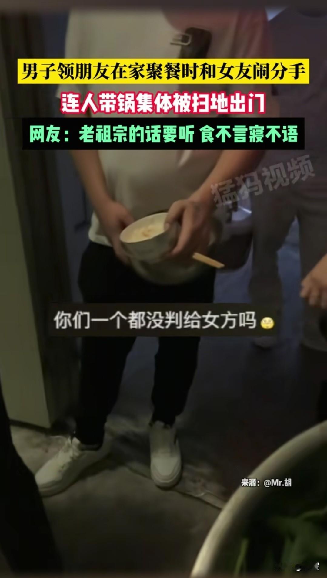 男子领朋友回家聚餐时, 和女朋友闹分手。 连人带东西都被赶了出来。 男人错愕
