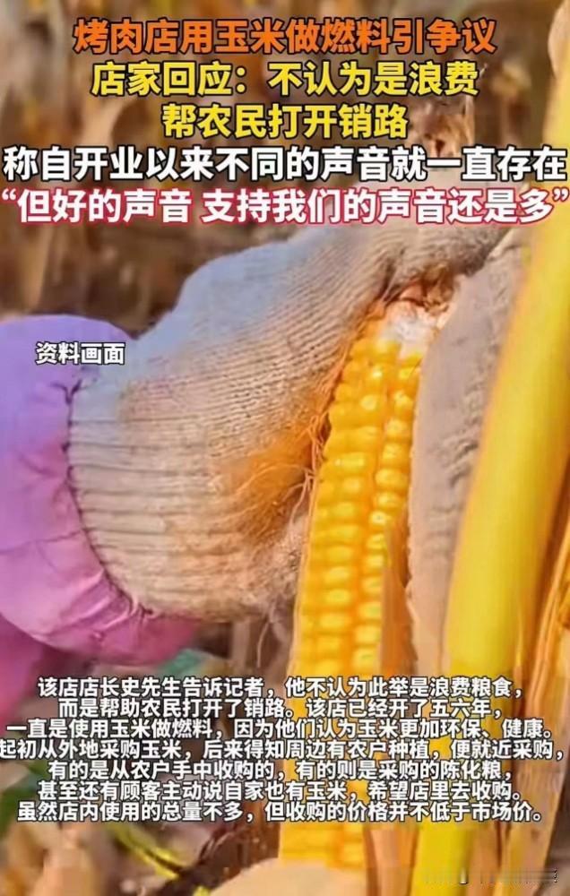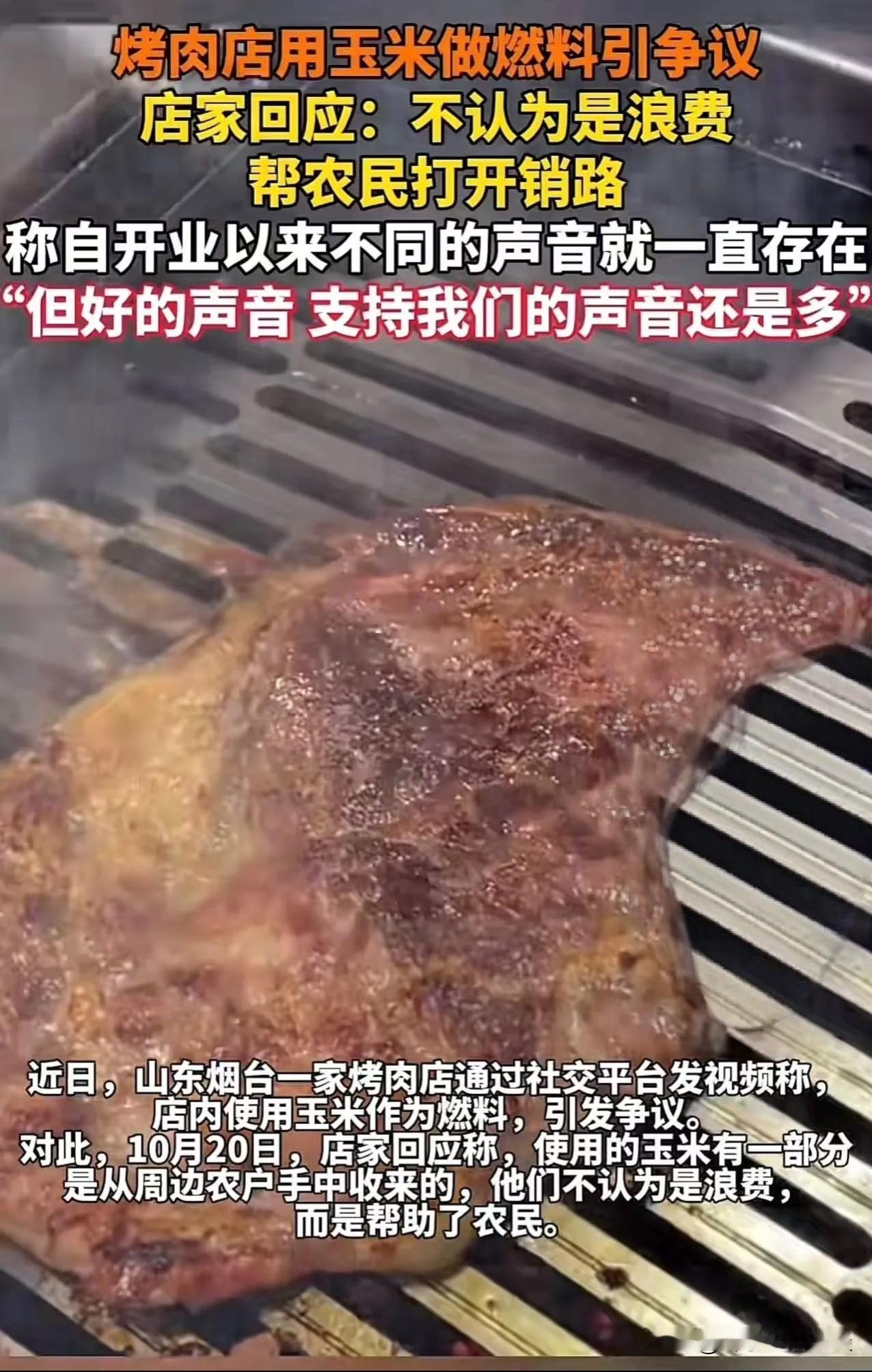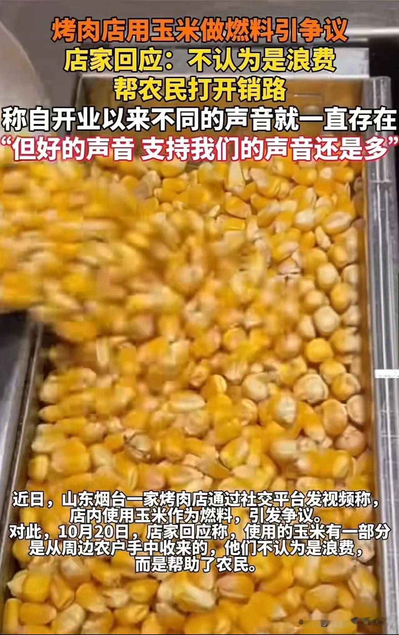山东烟台一家烤肉店把玉米粒当燃料,直接在网上吵翻了天!本想靠"玉米甜香烤肉"搞特