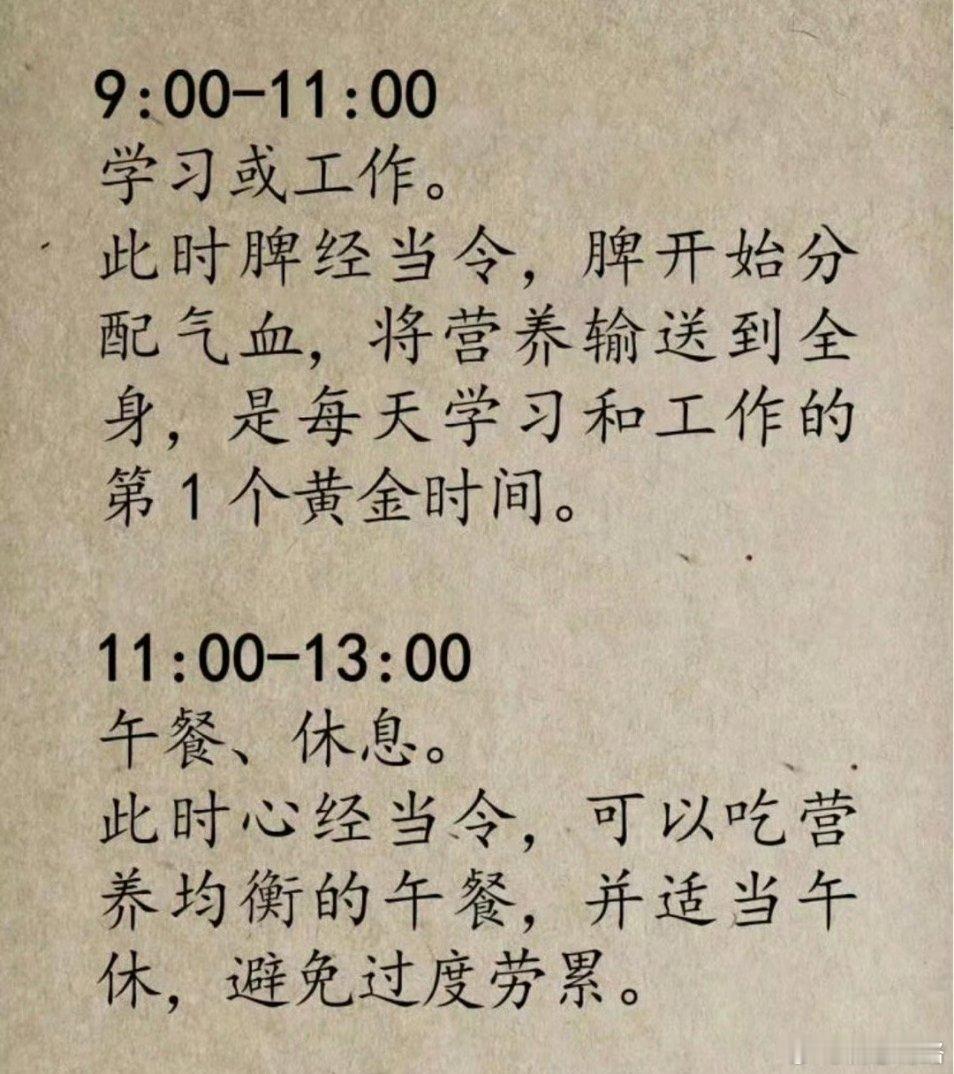 中医推荐的人体作息最佳时间表……