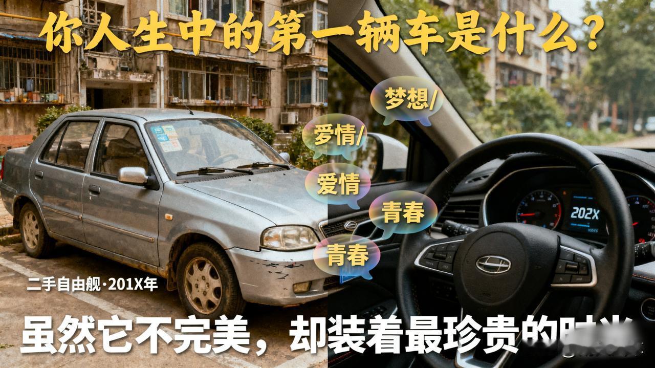 你人生中的第一辆车是什么?看哭了… 我的是二手的吉利自由舰,虽然到处响,空调不