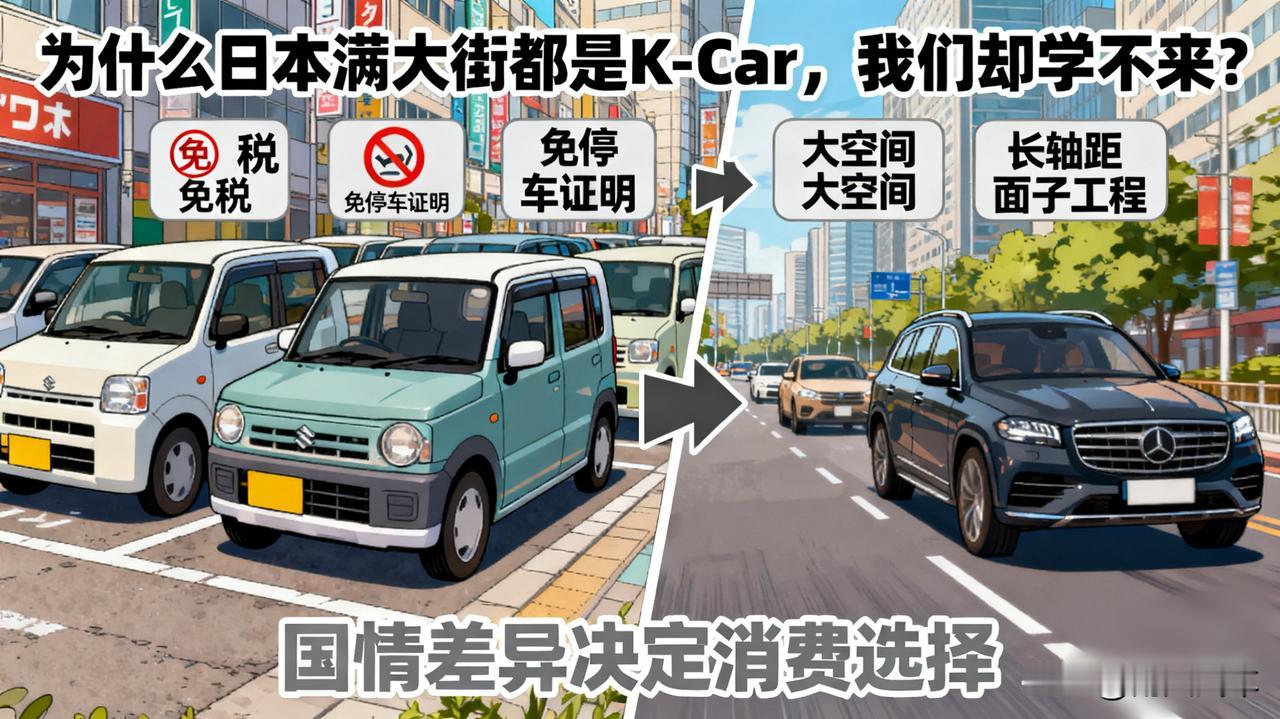 为什么日本满大街都是K-Car,我们却学不来? 日本有政策扶持(免税、免停车证明),我们国情不同。我们要的是大空间、长轴距,面子工程不能少。 K-Car那种方盒子,在国内注定是小众玩具。 K-car 日本bmw K-Car 中式K-car 铃木k-car K-Car跑车 丰田K-car