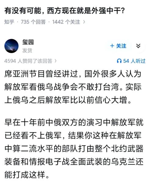 俄乌冲突其实打的都不错! 大鹅前期准备不足,后期改变了策略,无人机和新式武器也上阵了,效果不错。二毛原本实力就不弱,跟大鹅处了千百年的邻居,对彼此很了解。所以在北约集团支持下,打的有来有回。 现在不是单纯要收复宝岛的问题,是要打破老美的三条岛链的问题,一旦老美被打趴下了,宝岛不用打就回来了。所以说到底,是老美在背后搞事。不要单纯看宝岛,要盯着背后的老美。 所以现在的情况下,咱们的战略定力很强,不把老美耗的足够虚弱,是不会轻易改变现状。所以大家不能着急,熬鹰需要时间。要不然熬鹰不够时间,容易挣脱掌控。 老美现在已经是一堆问题了,不买大豆就让老美上大火了,等到2027年彻底摆脱芯片压力,咱们美债如果再拋干净,这些事都不是事了。 目前咱们的先进制造业,已经到了世界离不开的地步。劳动密集型产业是出去了一些,但是精密制造能力更强大,利润也是更高的。 不管咋说,别看俄乌冲突打的激烈,具备一定的参考价值,还得是继续按照咱们的节奏来,这才是根本。