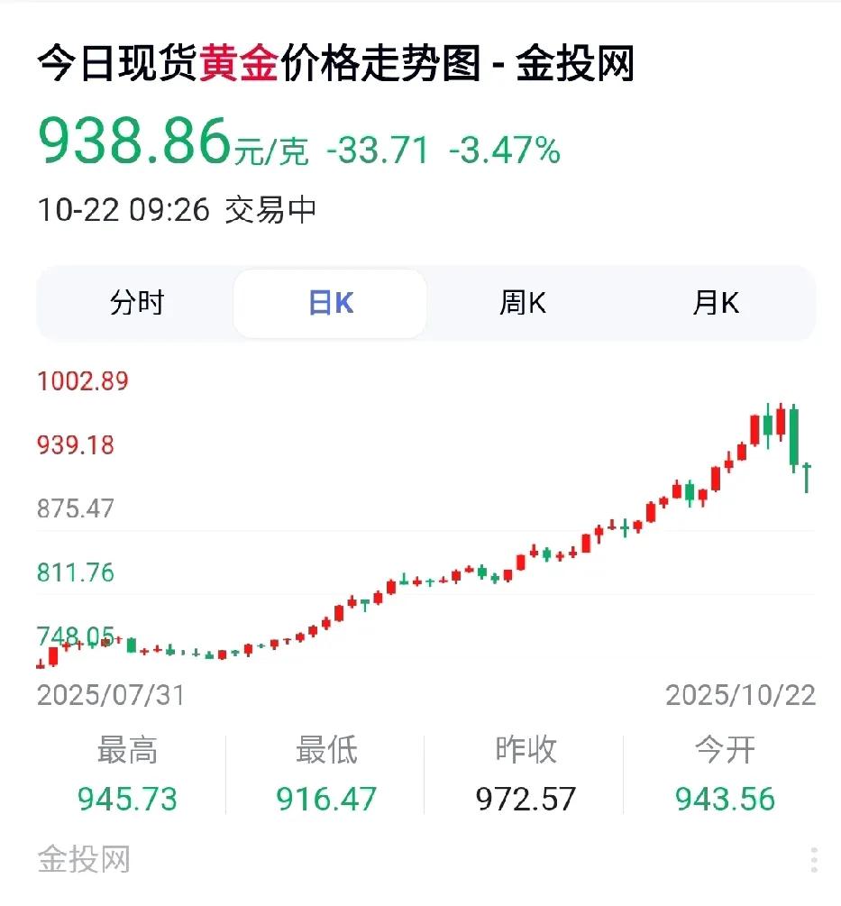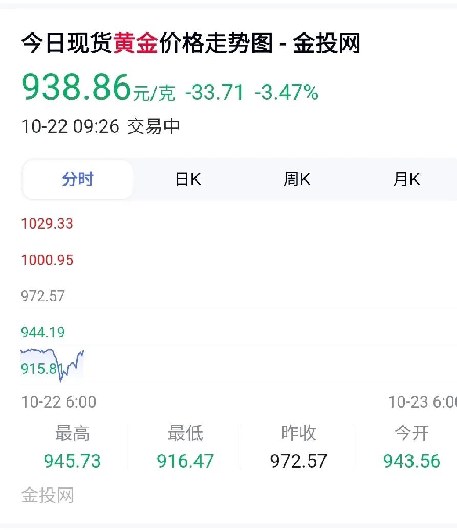 现货黄金继续下跌,最新价938,最低到过916。 黄金下跌一是前期涨的太高了。二