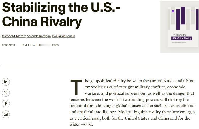 活久见!美国反华智库突然支持中国统一,“台独”分子彻底慌了! 最近,美国最有影响力的保守派智库之一“兰德公司”,突然抛出了一份关于中美关系的报告《稳定美中竞争》。而在这份长达115页的报告名叫,里面的建议相当“反常”。 “兰德公司”明确提出建议,美国得在政治、军事等领域全面降低对华攻击性,不能再像以前那样处处针对,甚至要和中国一起商量着制定规则,稳住双方的竞争态势。 最关键的是涉台问题,报告罕见地表示“美国应最大限度激励北京采取‘渐进统一’路径,而非武力统一”。简单的说,就是建议美国尽量推动中国走和平统一的路子,而不会因为美国的刺激就逼得不得不武统。 而“兰德公司”之所以会这么说,也不是他们突然“良心发现”,而是算清了现实的利弊。 这些年美国在台海搞了不少兵棋推演,结果早就摆在那:中国在周边构建的防御体系越来越成熟,美军要是真想来插手台海事务,要付出的代价根本承受不起,就连他们引以为傲的航母战斗群,在亚太地区也不再是“安全岛”。 经济上的账更明白,一旦台海发生冲突,美国可能要损失高达10%的GDP,而且全球化背景下,贸易通道和能源供应一中断,美国自己的经济也得跟着崩。 再加上中国的核威慑能力已经形成有效平衡,美国想靠核威胁来施压也根本没用,种种现实让他们不得不重新考虑对华策略,这才有了这如此罕见的表态。 不过,不管“兰德公司”怎么建议,都改变不了一个核心事实:台湾问题是中国的内政。 国防部新闻发言人早就明确表态,台湾问题是中美关系第一条不可逾越的红线,美方打“台湾牌”无异于玩火。我们怎么实现统一、什么时候实现统一,从来都只由中国自己决定,轮不到任何外部势力指手画脚。 “兰德公司”的报告顶多说明美国战略界开始认清现实,但这丝毫动摇不了祖国统一的历史进程。 “台独”分子就是再慌也没用,因为统一是人心所向、大势所趋,这股潮流谁也挡不住。