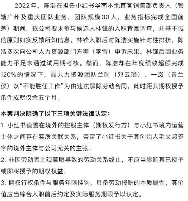 互联网大厂的兄弟们,手里那点期权,是不是总感觉是张老板画的饼?平时说得天花乱坠,一到关键时刻,就想方设法不让你吃到? 最近,有个判例大快人心!一位兄弟再熬5个月就能行权了,公司眼红了,竟用“不胜任工作”这种烂借口把他开除,明目张胆地想省下这笔期权钱[衰] 这吃相实在太难看了[吃瓜群众]好在法院的眼睛是雪亮的,直接一巴掌扇回去:违法解除!赔钱!73万! 这起案例意义非凡,它直接撕破了无良老板的三张遮羞布: ①别拿“境外公司”当挡箭牌。 老板们不是最爱说“期权是开曼公司发的,跟我中国公司无关”吗?这次法院明确:不管你穿什么马甲,谁实际用工,谁就得负责!想白嫖劳动力?门儿都没有。 ②不是员工自己想走,期权权益必须算。 公司恶意开除,导致员工无法行权,这损失必须公司担着。想靠裁员“卡点”省成本?做梦。 ③期权,就是劳动报酬。 别再把期权吹成未来的“金元宝”,落实到合同里,它就是员工薪酬的一部分,是员工用时间和汗水换来的。想赖掉?那就是恶意欠薪。 期权股票这些年作为很多高科技、互联网大厂的激励手段,被各公司广泛使用,既可以缓解短期的现金流压力,又可以让员工把自己的利益和公司做定期捆绑。但是,近些年裁员日常化,让一些公司开始动歪脑筋,在员工股票期权行权之前把员工请走,这样就可以赖账赖掉应该承诺给员工的报酬。 凡是想赖掉该给的钱不给的老板,和恶意拖欠工资的性质是一样的,都是不要脸,想白嫖。各位职场牛马一定要擦亮双眼,做好各种证据留存,万一对簿公堂,让他们尝尝违法的代价。