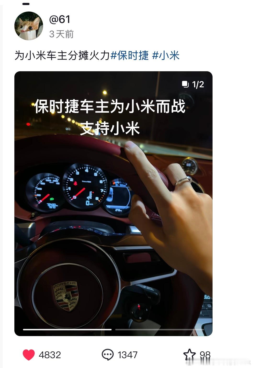 最近时常能刷到特斯拉、比亚迪车主以及一众其他品牌车主都站出来为小米车主发声分担火