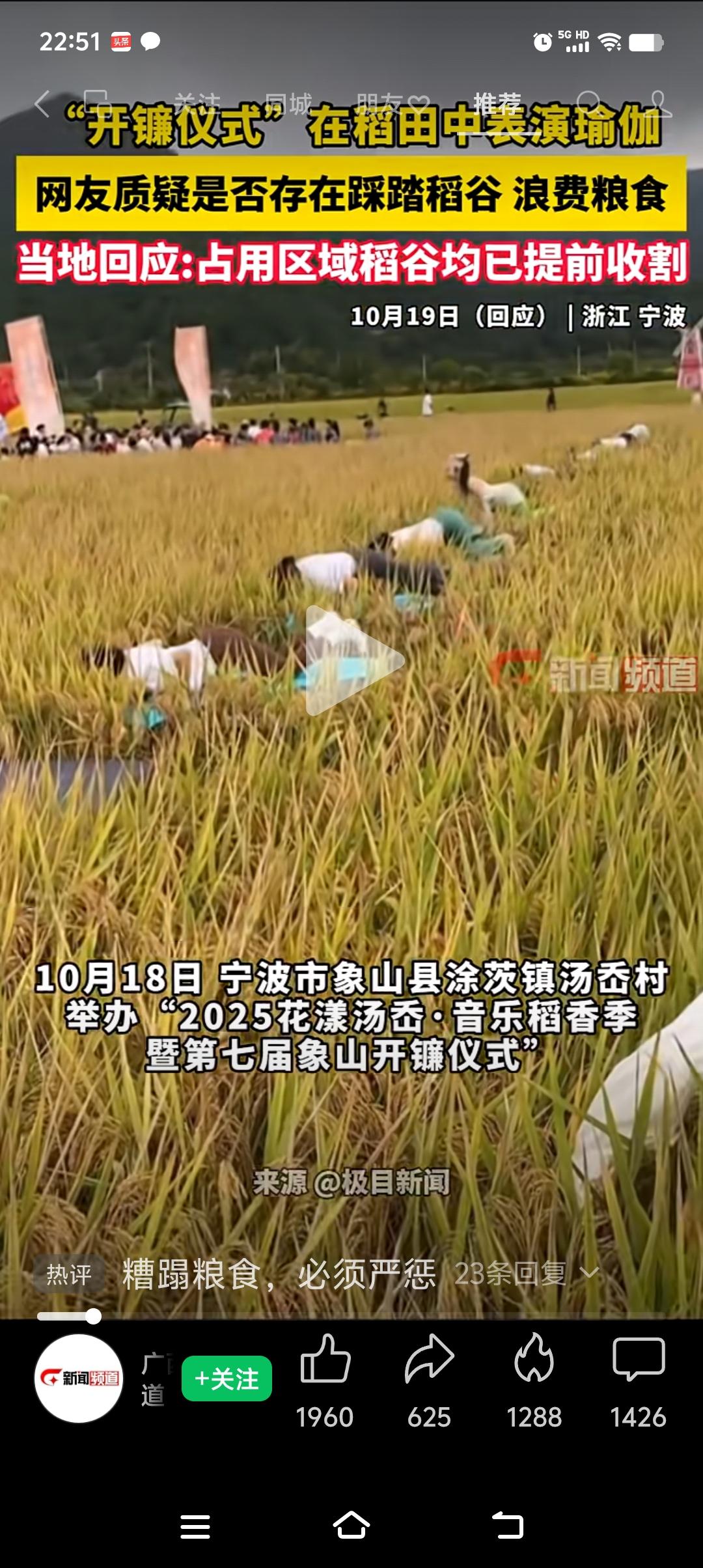 这扯不扯,宁波搞了个“开镰仪式”竟然是一群穿着瑜伽服的美女,趴在稻田里做各种动作