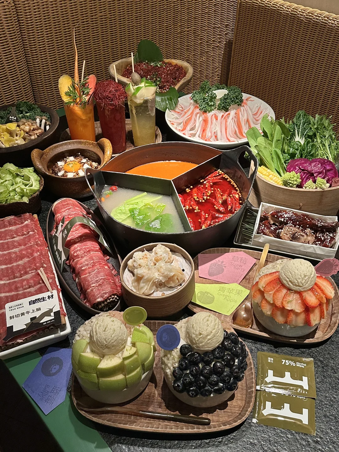 真的很难拒绝这种山野漂亮火锅~ 每次和姐妹约会都选这家! 各种各样的山野菜 甜品和饮品也好看又好吃的