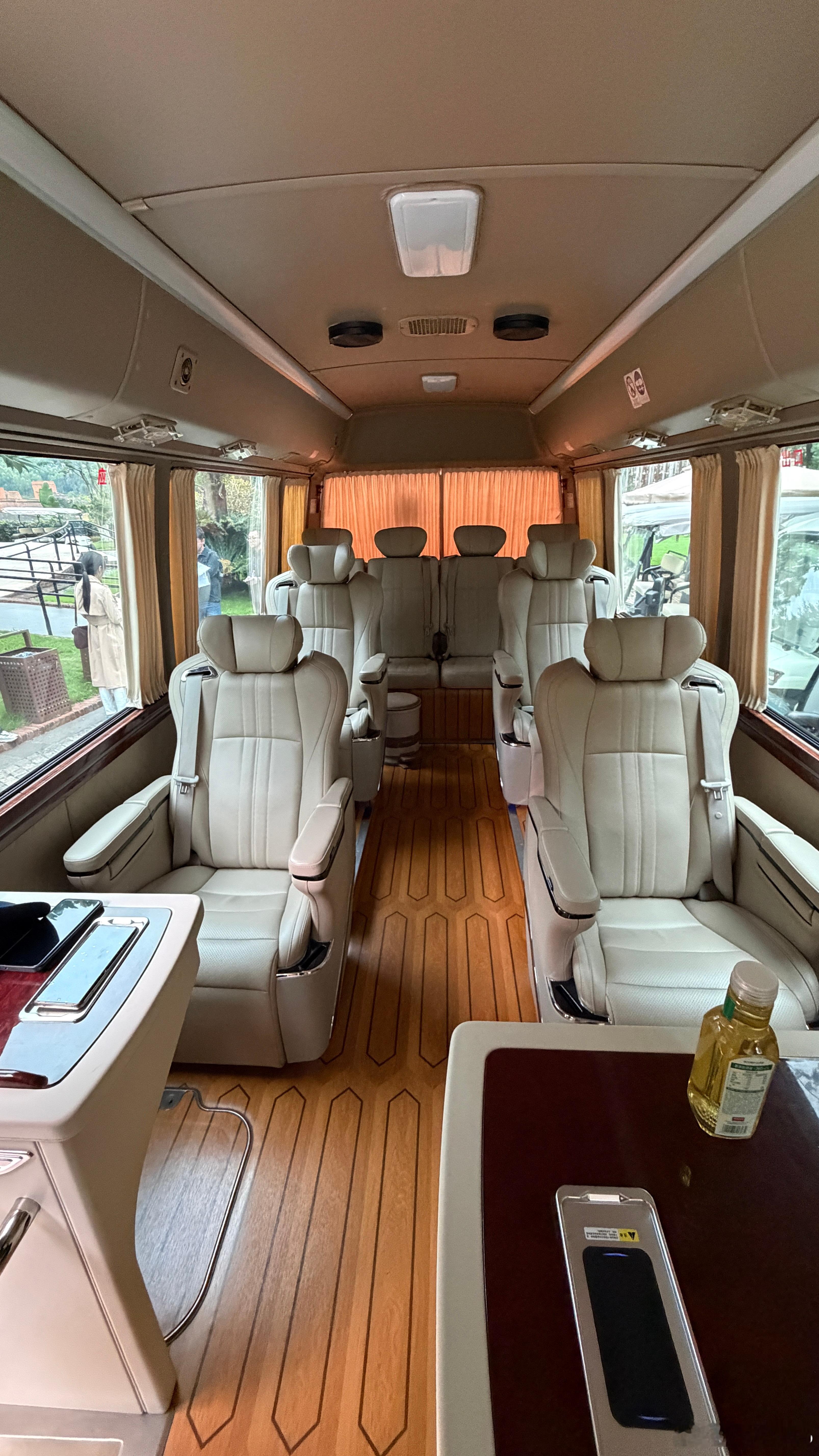 大伙儿帮忙看看这考斯特够尊吗?一共就三排座,四张独立老板椅,功能还巨丰富,真是小