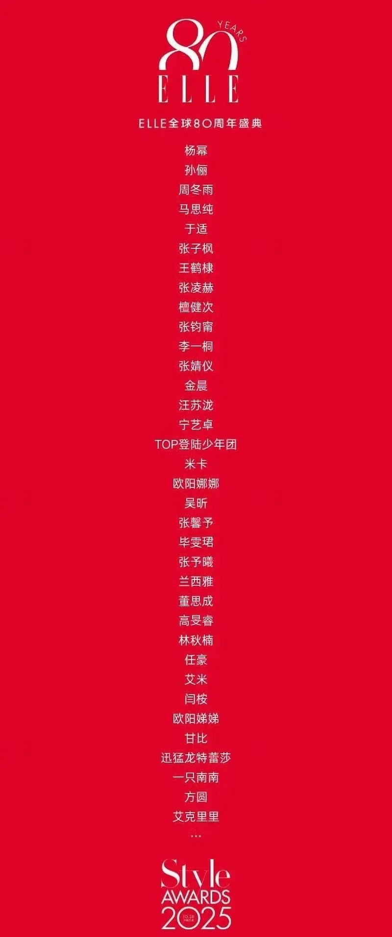 ELLE80周年盛典全阵容名单
