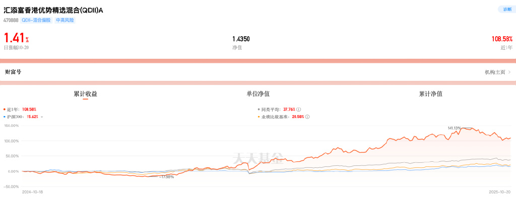 天天基金数据显示,张韡的汇添富香港优势精选(QDII)A收益率领跑全市场