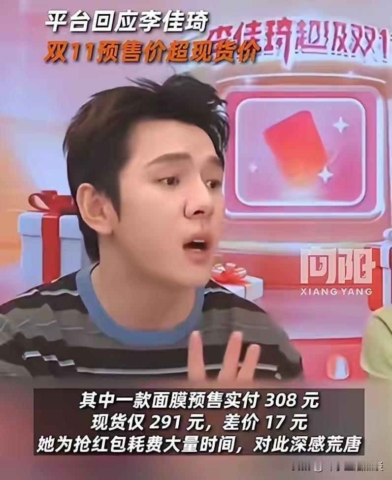 熬夜蹲预售反被“割韭菜”?李佳琦回应绝了,这波操作谁扛得住 本想蹲预售薅波大的,结果反倒成了“冤大头”?今年双11,李佳琦直播间的价格让不少人直呼上当。90后徐小姐说,自己熬大夜抢的面膜,预售实付308元,转头看现货才291元,有的商品差价直接差出一顿饭钱,“算满减、抢红包忙半天,合着是给商家凑业绩呢?” 这事一闹大,“李佳琦一晚被退8亿”的说法传得有鼻子有眼。10月22日他终于回应,一口否认退货传闻,还挺硬气:“别替我难过,发了不少红包,不买也没事,就当今年双11没做。”可大伙最关心的“预售为啥比现货贵”,他半句没提,跟没看见似的。 记者问平台客服,对方却说没接到反馈,得消费者自己拿订单核对。其实这套路早有端倪,不少人都碰到过同一商品多个价格的情况[__LINK_ICON]。律师和消协都提醒了,遇到这种情况别认栽,保存好预售截图和订单,直接找商家要差价,不行就举报[__LINK_ICON]。 说好的“无套路”咋变“套路深”了?你被预售坑过吗?退差价成功了吗?来评论区支支招!(由AI生成,仅供参考)李佳琦 李佳琦带货 热议李佳琦