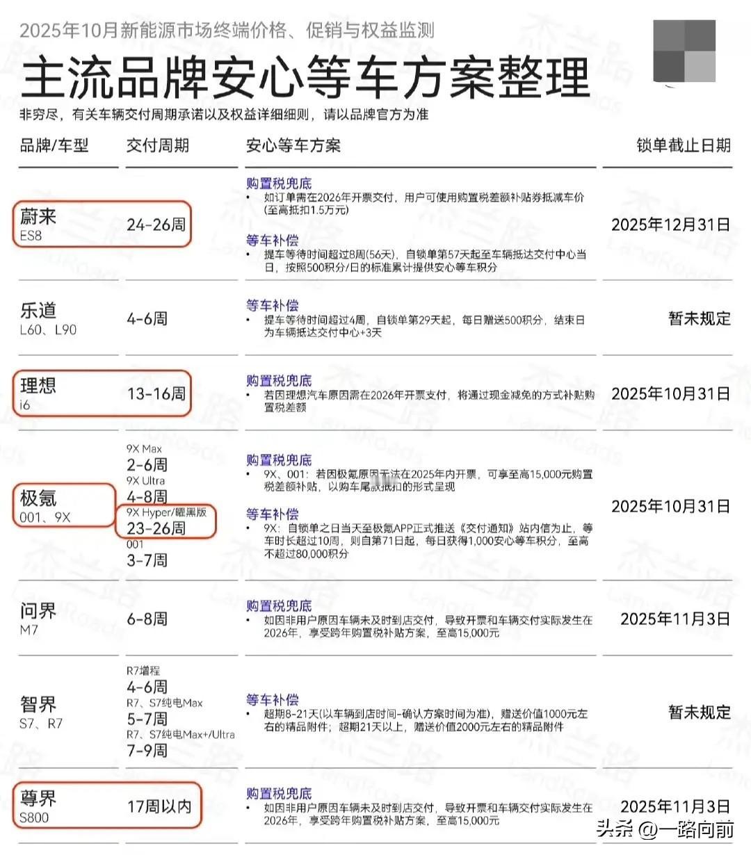 问界要开始“截胡”竞品订单,发挥产能优势?有可能只要是定了极氪9X、蔚来ES8、理想全系的车主,转定问界M8或M9,直接报销5000元大定,还额外叠加优惠。别觉得这招眼熟,别人玩是跟风,问界敢这么干,全靠产能撑着底气! 这操作看着是“撒钱抢客户”,实则是精准戳中竞品的软肋。现在想买理想L9、蔚来ES8?光排队就得等3-4个月,极氪9X热门配置甚至要等半年,不少车主交了定金就后悔“买了期货车”。但问界这边早就开启双班满负荷生产,M9月产能稳超3万台,M8 6月交付量直接冲2-3万台,热门配置基本2-4周就能提车,部分车型甚至有现车。一边是遥遥无期的等待,一边是“报销定金+立等可取”,换谁不心动? 其实“截胡”竞品订单早成行业常规操作,蔚来、极氪之前都试过给转定用户补定金,但大多雷声大雨点小,要么产能跟不上,转定了照样等;要么补贴流程繁琐,最后不了了之。问界这波能玩得开,核心是把“产能优势”变成了“抢单利器”:去年新M7上市时就靠报销理想定金拉来不少客户,今年M8单周交付能破5000台,产能硬实力摆在这。 更鸡贼的是选对了“狙击目标”。极氪9X、蔚来ES8、理想L系列全是35万以上的中高端车型,和问界M8(35.98万起)、M9的价格带完美重合。这些车主本来就纠结选哪个,问界直接用“真金白银+快速提车”的组合拳打破平衡,5000元定金报销相当于白捡的优惠,再加上华为ADS 4.0智驾这种核心配置加持,转定的理由太充分了。 说到底,新能源市场早就从“比产品”进化到“比效率”。问界这波操作,本质是用产能优势打了场“闪电战”。那些还在让用户排队等车的车企,要是不赶紧跟上,怕是要被抢走更多客户。