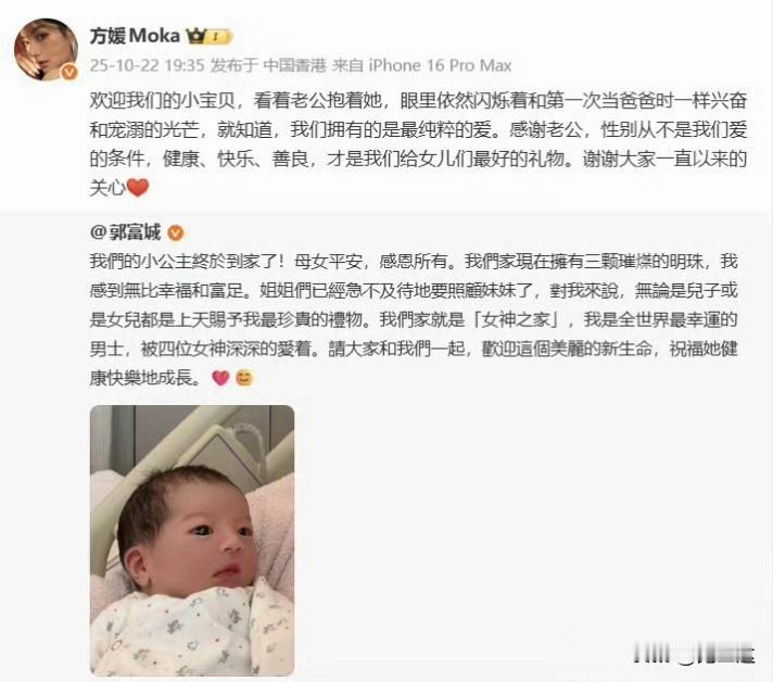 产房传喜讯——生了! 恭喜郭天王喜添千金,母女平安。 女儿眼睛又大又有神,像