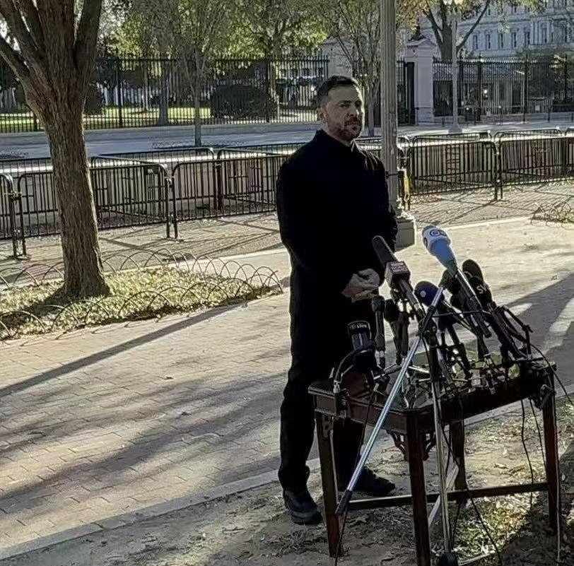 乌克兰总统和乌克兰人视为耻辱,人类历史上的首次。泽连斯基作为一国总统,却不得不在白宫对面的马路边搭个桌子召开记者会。 这次泽连斯基真是拼了!10月17日,他没有在白宫里开记者会,而是在白宫对面的马路边支了张折叠桌,面对全世界的镜头开讲。 镜头里,他背后是白宫的铁栏杆,面前是草坪和来往的行人,一张临时摆出来的桌子,就成了2025年最扎眼的外交现场。看起来狼狈,但这一步,其实是他不得不出的险棋。 为什么?因为他心里清楚,单靠跟特朗普硬碰硬没用。要想让美国人、欧洲人,乃至乌克兰的老百姓都明白自己现在的处境,最直接的办法就是把这场面搬到街上,让全世界都看见。 他为什么在白宫门口“摆摊”?说白了,当天的会谈很不顺。特朗普直接拒绝,连个模糊承诺都没给,气氛一度尴尬到可以用刀切。 谈不下去,泽连斯基干脆换思路:既然屋里说不通,那我就在屋外说给所有人听。这场路边发布会看似即兴,其实早有准备。 白宫在他背后,近得记者抬头就能把总统办公室一起拍进去。这个位置很微妙——既表示“我在你门口”,又意味着“我不进你的屋”。那道马路,那道铁栏,就是现在美乌关系的写照:合作还在,但隔阂更深。 这张折叠桌,表面是发新闻,实际上是在做政治动员。对外,它是向特朗普和国会喊话:你们如果继续拖延军援、卡武器,不只是乌克兰遭殃,全世界都看着你们。 对内,它是告诉乌克兰人民:总统没有在屋里被人敷衍,而是在世界最强大国家的门口,硬生生地把话说了出去。 泽连斯基很清楚,现在的舆论比子弹还重要。战争打了这么久,国际援助疲软,民众信心摇摆。他必须制造一个能抓住镜头的“象征时刻”——哪怕简陋、哪怕尴尬,也要让大家看到乌克兰还在拼,还没认输,这不是“丢人”,而是策略! 有人说,这样太狼狈了,一国总统怎么能在人行道上开发布会?可泽连斯基自己就知道——比起在东厅里照稿念一篇声明,这种“街头发布会”反而更有冲击力。风刮着话筒、车声盖着记者提问,这种真实的混乱,反倒让人相信他是在说真话。 更重要的是,他把话题重新推上热搜。现在所有人都在谈论乌克兰还缺什么、美国该不该出手。对于一个在前线苦撑的国家来说,这就是成功。舆论注意力能换来援助,能换来谈判筹码。 千万别搞错,这张路边的桌子不只是摆给华盛顿看,更是摆给乌克兰国内的人看的。泽连斯基想告诉他的人民:我没有退,我还在为你们争。我哪怕在白宫门口,也要喊出“不撤出顿巴斯”的底线。 乌克兰人明白这一点,所以这场看似“寒酸”的记者会,反而让他在国内的支持率回了一口气。大家看到的是一个被逼到极限还不低头的总统,一个为了国家尊严、哪怕站在马路上也要发声的领袖。 这次事件,说小不小,说大也大。说明乌克兰已经走到不得不靠“视觉冲击”维持国际注意力的地步。他用一张折叠桌,把战争的紧迫感和外交的尴尬,全都赤裸地摆在世界面前。 谁能占据话题,谁就能赢得一点喘息的空间。泽连斯基深谙此道。他不再等别人替他说话,而是自己拉张桌子,把真相摊在阳光下。 有人觉得这是耻辱,也有人说这是勇气。但无论站在哪一边都得承认,泽连斯基这步棋,赢在了诚实。他不再掩饰狼狈,而是用狼狈去唤起世界的关注。这张路边的桌子,也许是他政治生涯里最卑微的一幕,却可能是最有力量的一幕。 毕竟,能在白宫门口撑起一张桌子说出真话,本身就已经是一种难堪的胜利。 (每天更新,欢迎关注,喜欢文章的可以帮忙点个赞留条评~) 对此大家有什么看法?