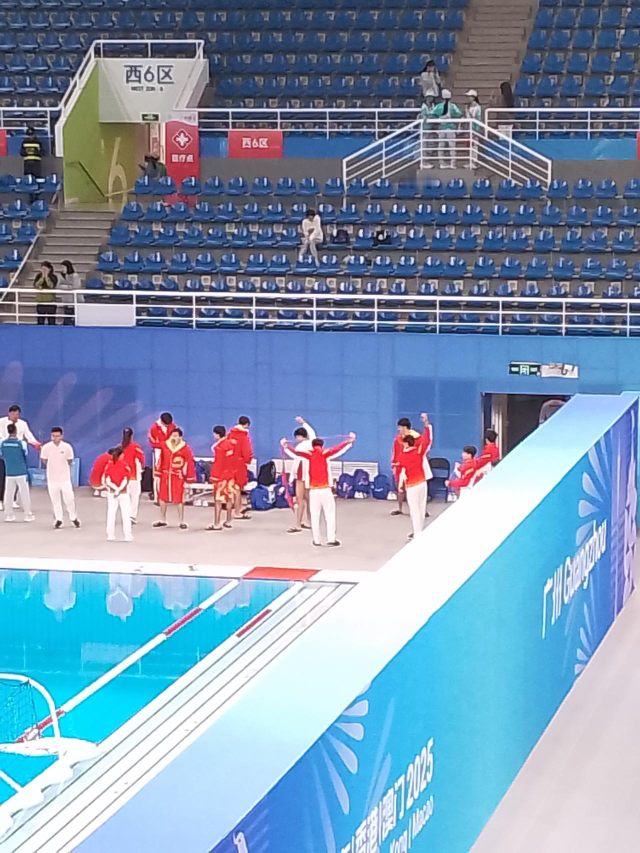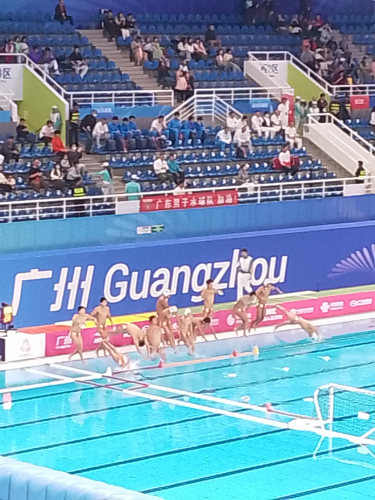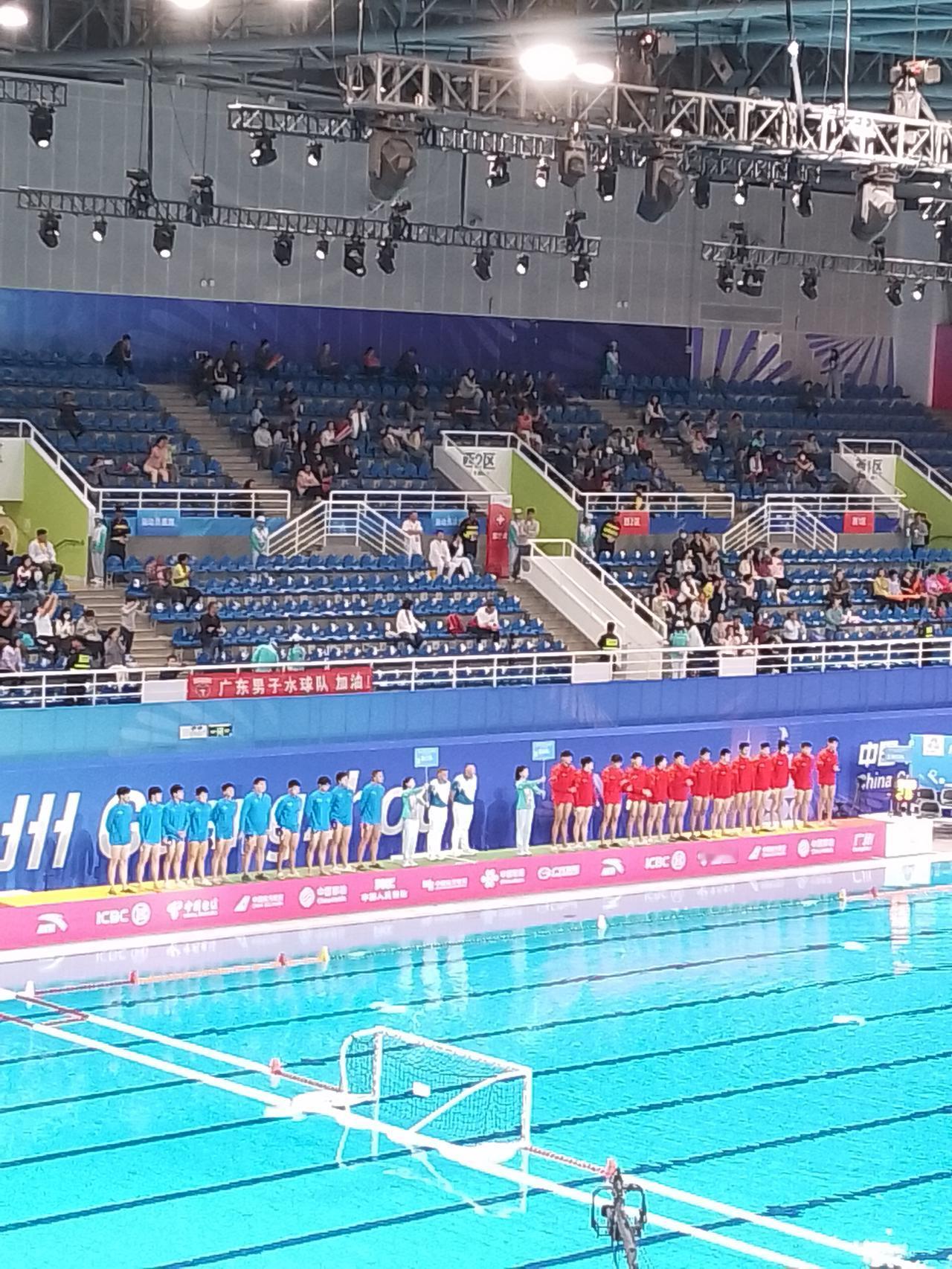 今天花了50元看了四场男子水球比赛真是超值了,回家查了一下广东队在历届比赛中获得9次冠军的强队,上海队获得三次冠军,广西获得1次冠军,今天四场比赛,第一场是上海队对湖南队,上海队胜,第二场重庆队对浙江队,重庆队胜,第三场是广东队对四川队,广东队胜,第四场是广西队对香港队,广西胜!这次观看的队都是强队啊!